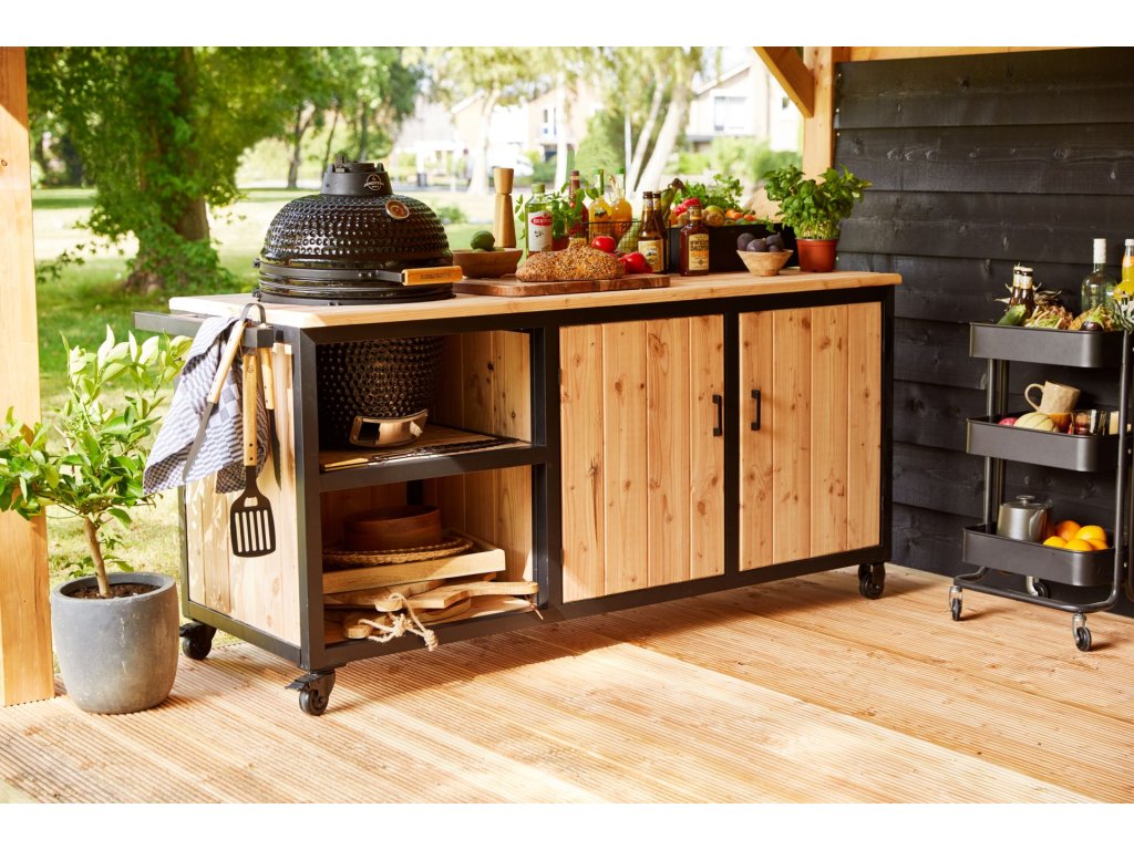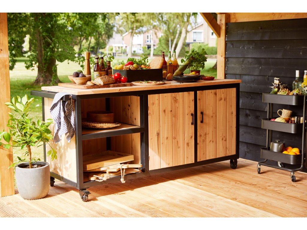 Večeřte venku stylově s vlastní venkovní kuchyni. Tato kuchaně je vyrobena z lakovaného ocelového rámu s douglasovým obložením a je ideální pro vaše potřeby venkovního vaření. Už žádné trápení s hledáním místa pro grilovací náčiní při rozdělávání grilu pro rodinu a přátele.