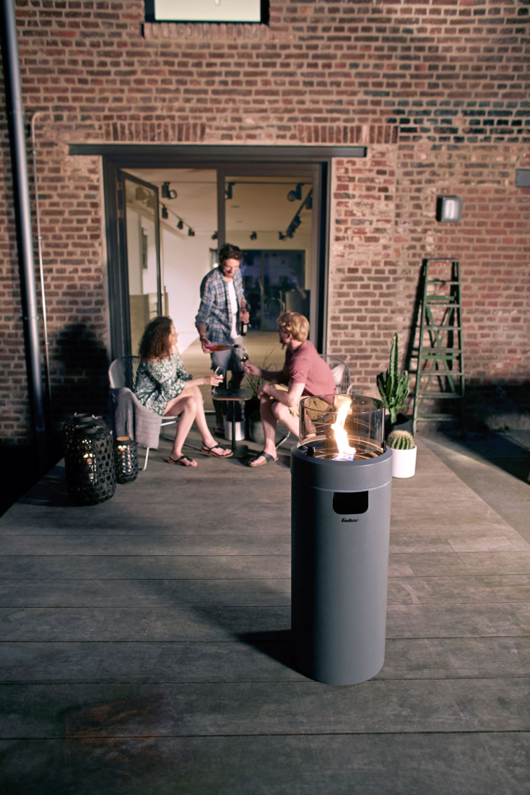 NOVA LED si okamžitě všimnete. Ne kvůli masivnímu tělu nebo hlučnému hoření – právě naopak. „Ohnivý sloupec“ ve skleněném válci působí elegantně a moderně. Je to typ zařízení, které neukrýváte v koutě, ale naopak vystavíte přímo do středu terasy. Plamen je chráněn válcem z ohnivzdorného skla, takže nepůsobí divoce ani při slabším větru.
