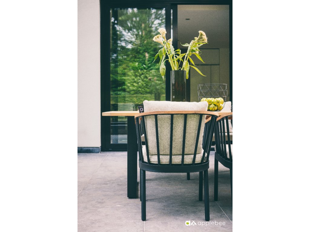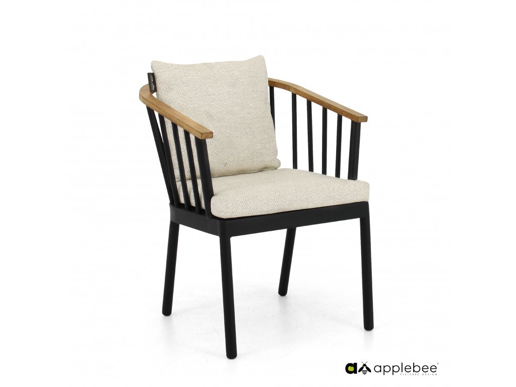 6x jídelní židle Condor 60 cm, rám aluminium černý, opěrka SVLK přírodní teak, BEE WETT® podsedák a opěrkový polštář v barvě přírodní dub