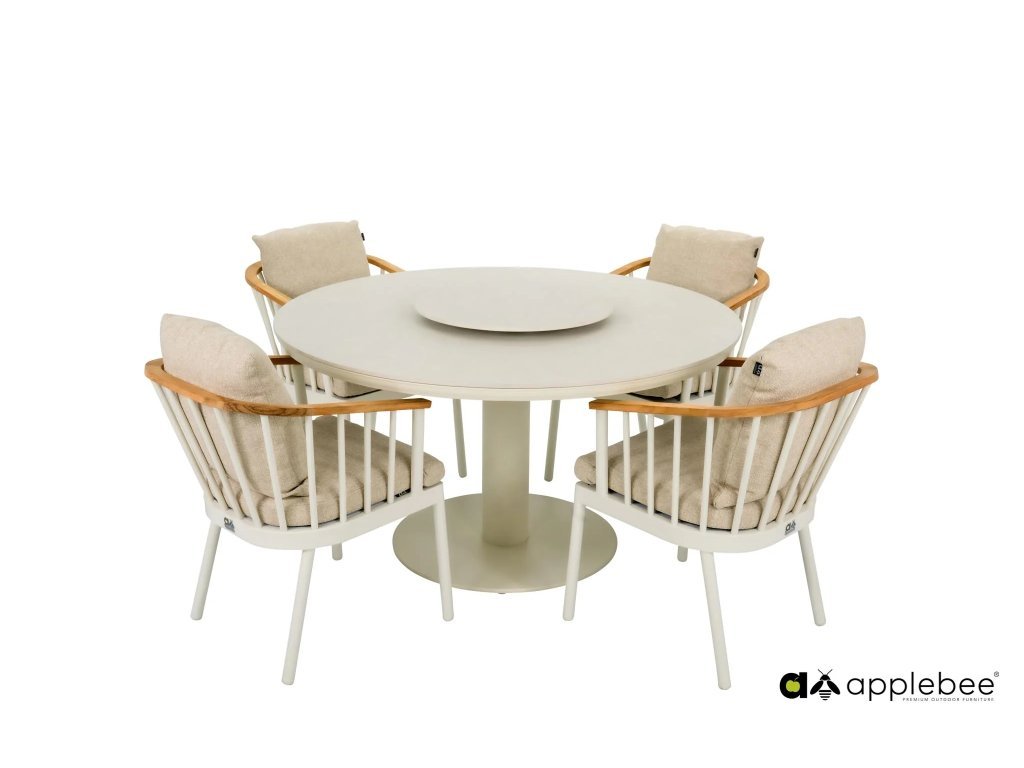 1x Jídelní stůl Melville 140 x 77 cm, rám aluminium OYSTER krémová, stolová deska spékaný kámen + melville lazy Oval s průměrem 60 cm - spékaný kámen. Stůl je vhodný pro 4-5 osob.