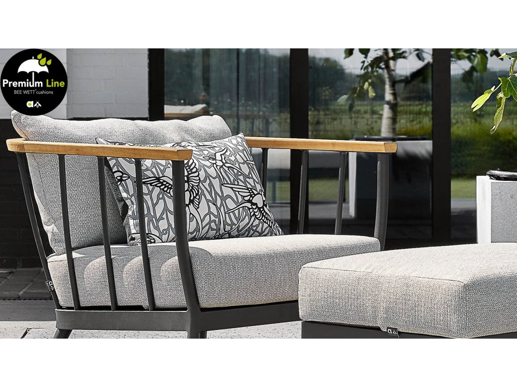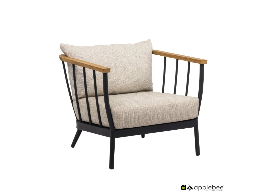 1x křeslo 80 cm, rám hliníkový černý, loketní opěrky SVLK teak přírodní, BEE WETT® podsedák a opěrka v barvě přírodní dub