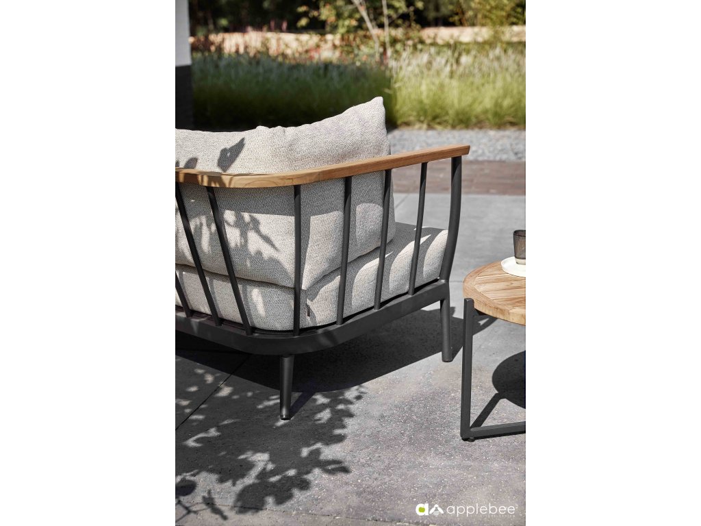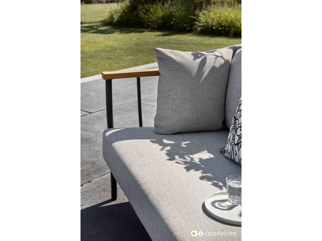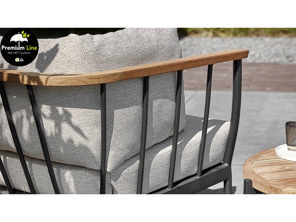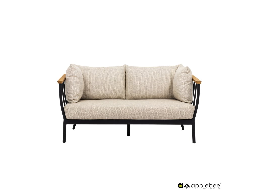 1x pohovka 2-místná 150 cm, rám hliníkový černý, loketní opěrky SVLK teak přírodní, BEE WETT® podsedák a opěrka v barvě přírodní dub