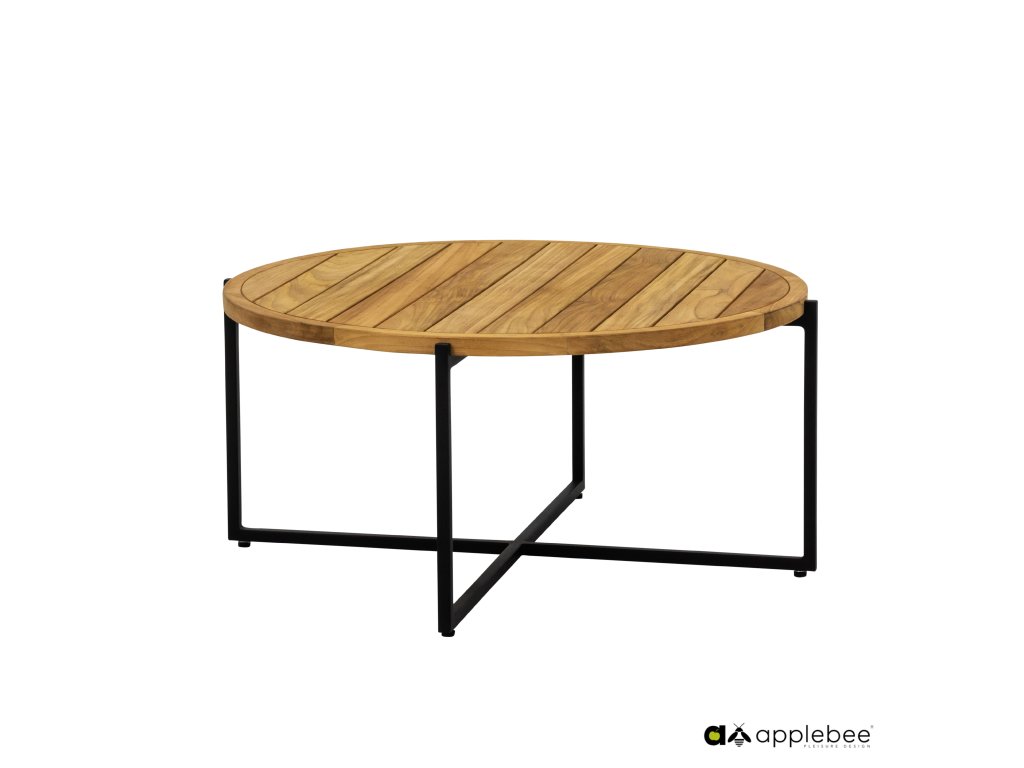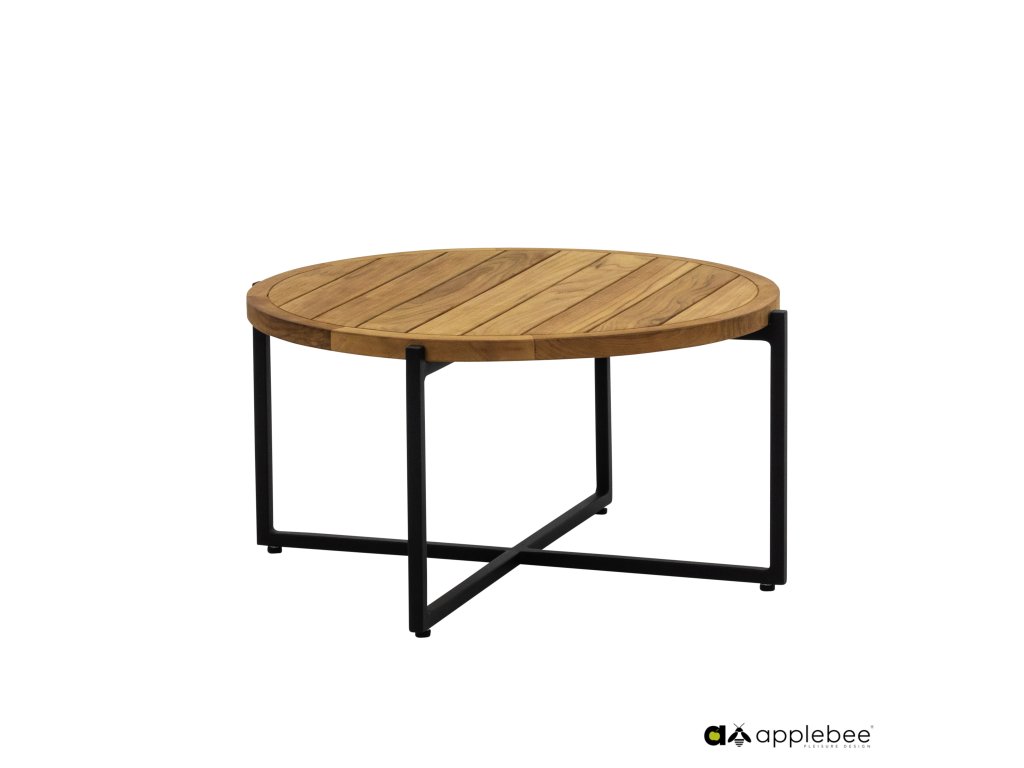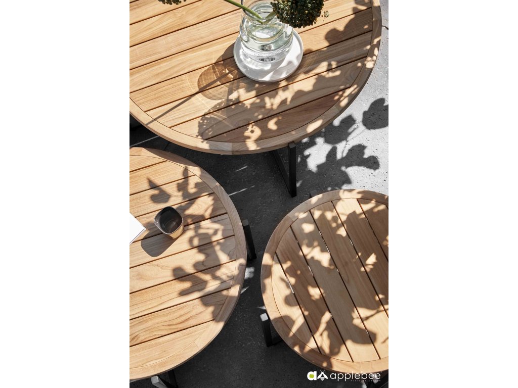 1x konferenční stolek Condor ø 74 cm rám hliníkový černý, stolní deska SVLK přírodní teak