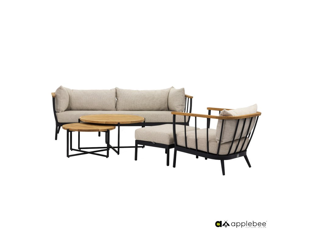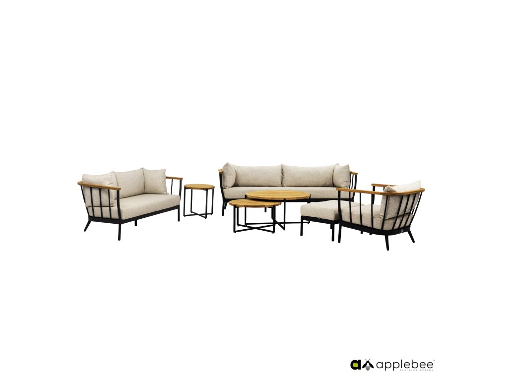 1x pohovka 3-místná 217 cm, rám hliníkový, černý, loketní opěrky SVLK teak přírodní, BEE WETT® podsedák a opěrka v barvě přírodní dub