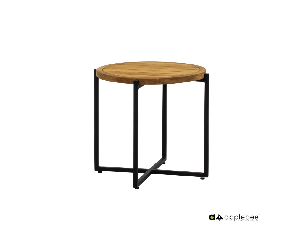 1x konferenční stolek Condor ø 54 cm rám hliníkový černý, stolní deska SVLK přírodní teak
