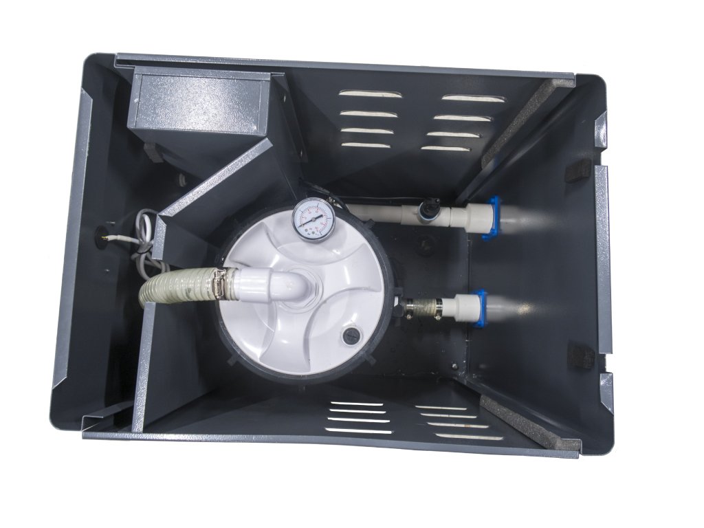 Systém je zabudován uvnitř pěkného kovového pouzdra, které má vstup a výstup pro vodu a uživatelský panel na druhém konci. Zařízení má 2kW ohřívač a lze jej použít s 10A elektrickou přípojkou. Kabel má zabudovanou ochranu proti poruchovému proudu. Zařízení se dodává se dvěma ventily a dvěma hadicovými spojkami pro hadici o vnitřním průměru 38 mm.