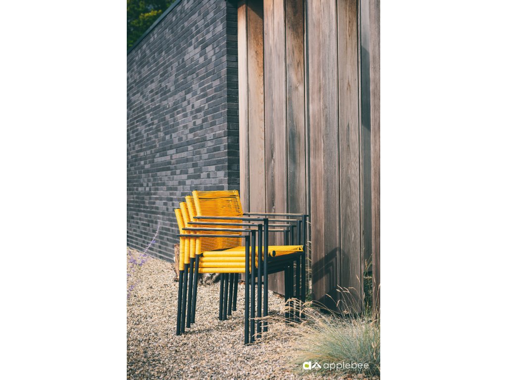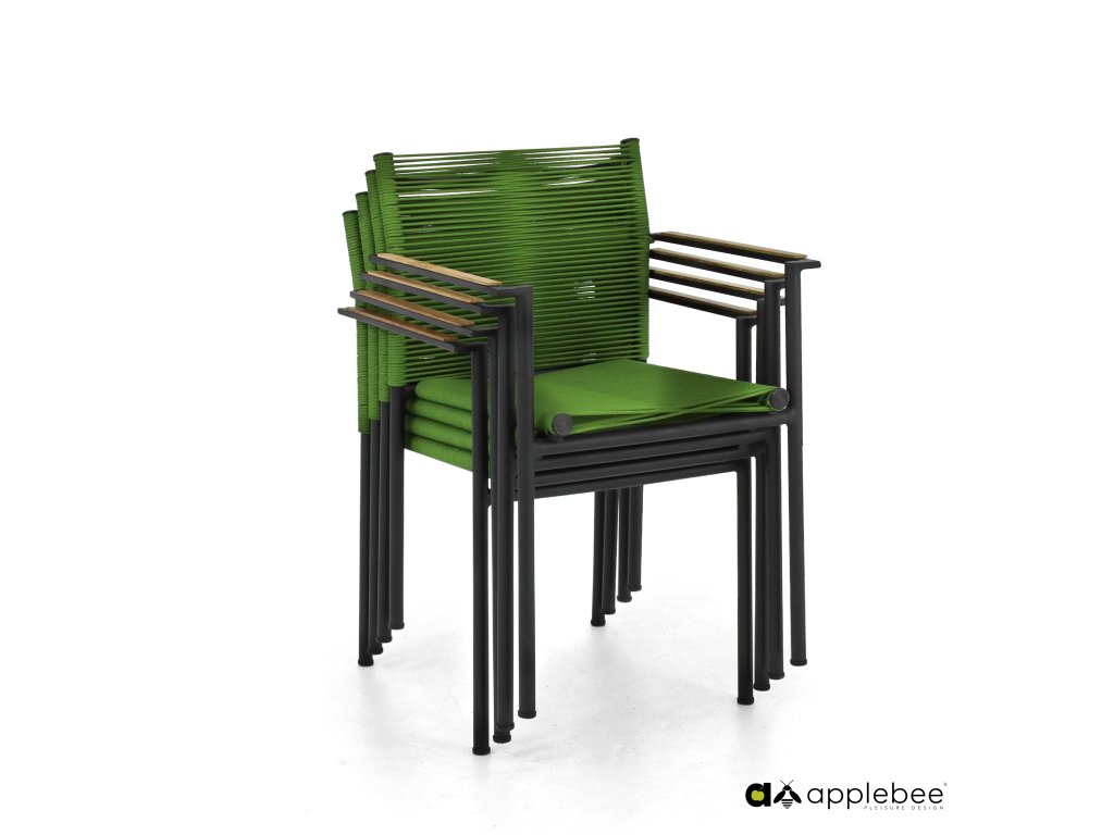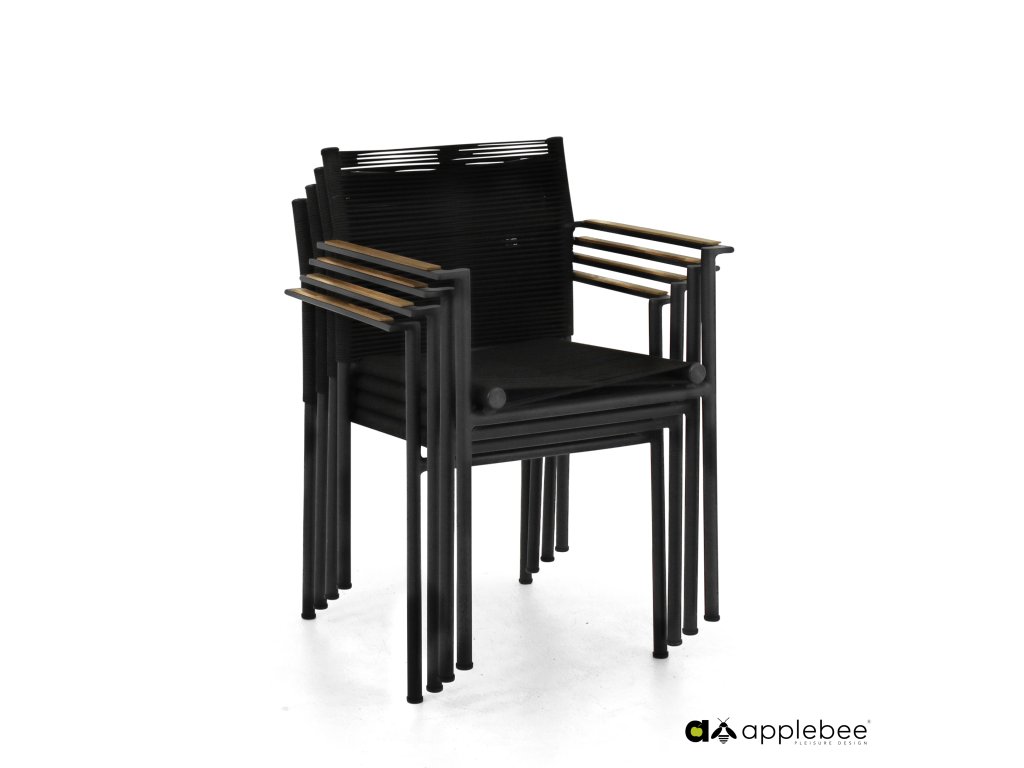 4x jídelní židle Jakarta 56 cm, rám aluminium černý, provazový výplet v barvách černá, šedá, olivová nebo žlutá, opěrka na ruce SVLK přírodní teak