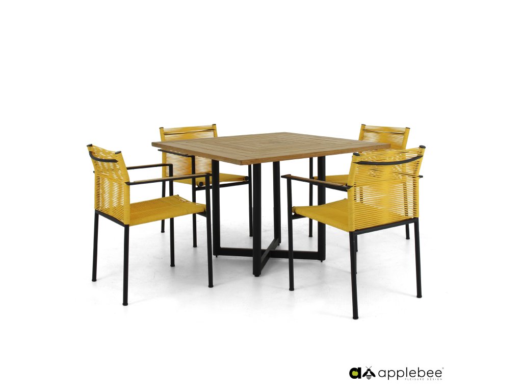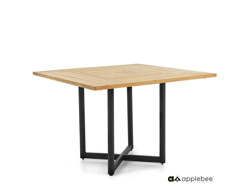 1x jídelní stůl Jakarta 110 x 110 cm, rám aluminium černý, stolní deska SVLK přírodní teak