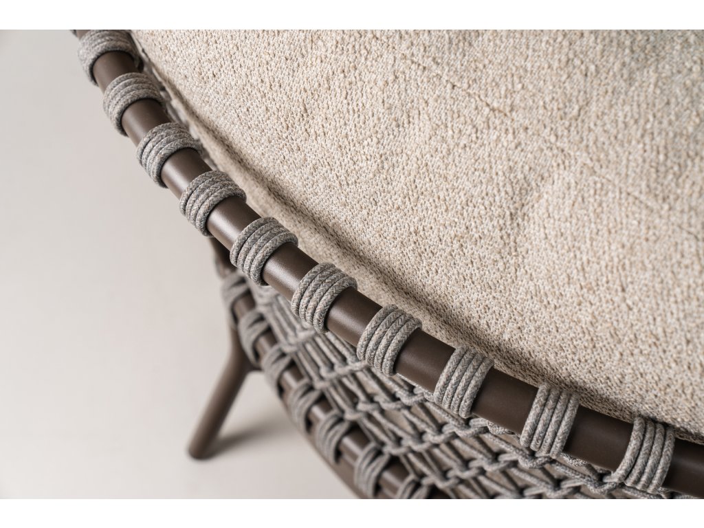 Juno sedací souprava kombinuje rafinovaný kovový rám s ručně tkaným lanem, čímž vytváří otevřený a vzdušný vzhled. Je ideální pro ty, kdo hledají stylový a funkční nábytek do zahrady.