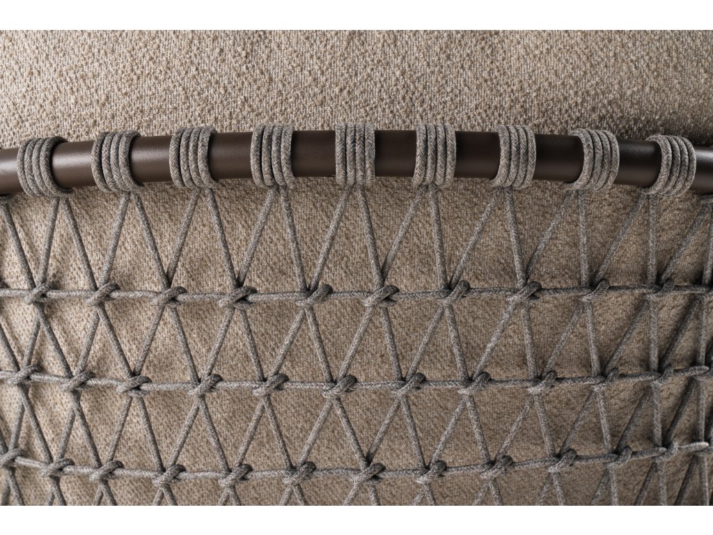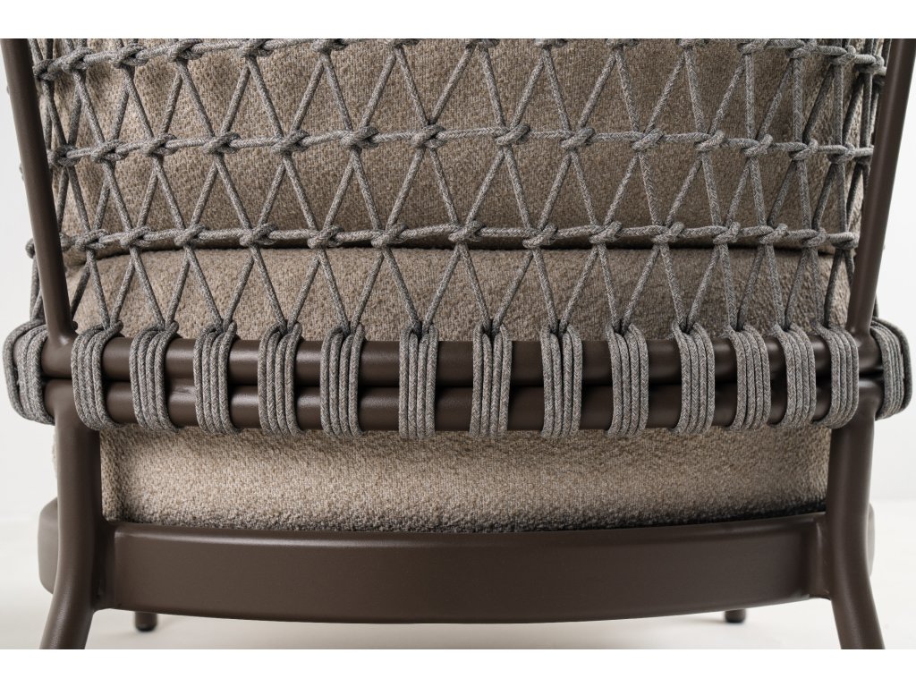 • křeslo JUNO chocolat - hnědá 78 x 84 x 74 cm, rám v hnědé barvě s polštáři v jemné barvě Ivory White, lano v barvě šedé