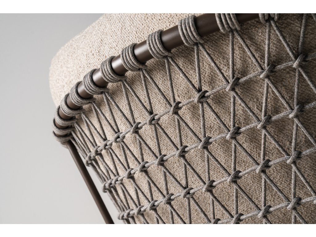 Juno sedací souprava kombinuje rafinovaný kovový rám s ručně tkaným lanem, čímž vytváří otevřený a vzdušný vzhled. Je ideální pro ty, kdo hledají stylový a funkční nábytek do zahrady.