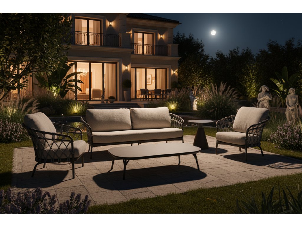 Moretti vyniká svými propracovanými detaily z lan a teplým, elegantním rámem. Otevřená struktura dodává designu vzdušný a příjemný charakter, zatímco velkoryse polstrované polštáře poskytují vynikající pohodlí. Všechny polštáře jsou čalouněny olefinovou látkou, díky čemuž jsou odolné, stálobarevné a vhodné pro venkovní použití. Moretti přináší do zahrady uvolněnou a sofistikovanou atmosféru.