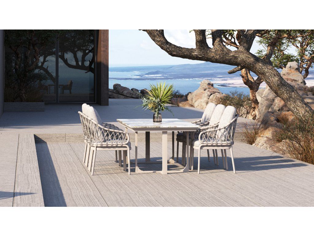 Jídelní souprava Natal v krémovém provedení působí elegantně a nadčasově, díky čemuž se hodí do různých typů exterierů. Světlý odstín dodává prostoru jemnost a vzdušnost, zatímco kvalitní zpracování zajišťuje pohodlí i dlouhou životnost. Souprava je ideální jak pro každodenní stolování, tak pro slavnostní příležitosti.