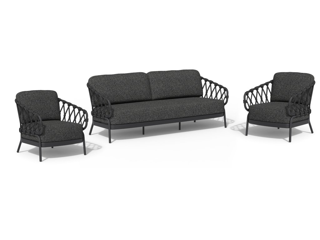 Tato sedací souprava kombinuje lehký rám s rafinovanými lanovými detaily, což zahradě dodává klidný a vzdušný vzhled. Samostatná pohovka a křesla umožňují flexibilní uspořádání s dostatkem pohodlí. Polštáře jsou čalouněny olefinovou látkou a jsou na dotek měkké, zatímco konferenční stolek, který k ní patří, dodává celé sestavě dokonalou rovnováhu.