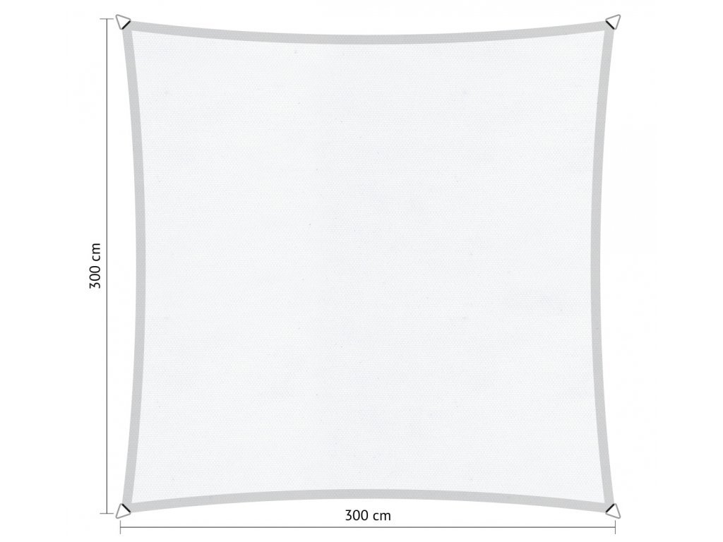 ** plachty mají vykrojené strany (hloubka křivky je cca 5% z délky podélné strany). Příklad: pokud máme plachtu o rozměru 5 x 5 m, bude mít uprostřed šířku 4,5 x 4,5 m! Berte prosím tuto informaci v úvahu při navrhování vašeho stínění.