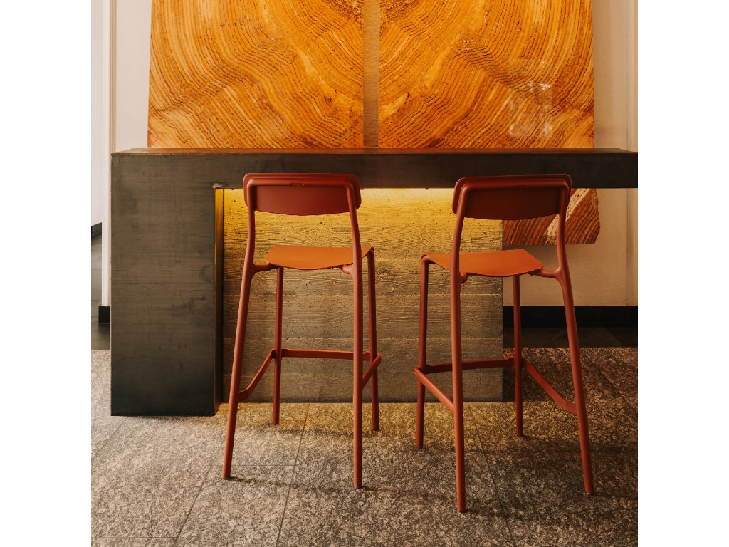 Barové židle jsou navíc stohovatelné, takže je lze snadno přeskládat a skladovat. Pohodlí a stabilitu zajišťuji gumová ukončení nožiček.