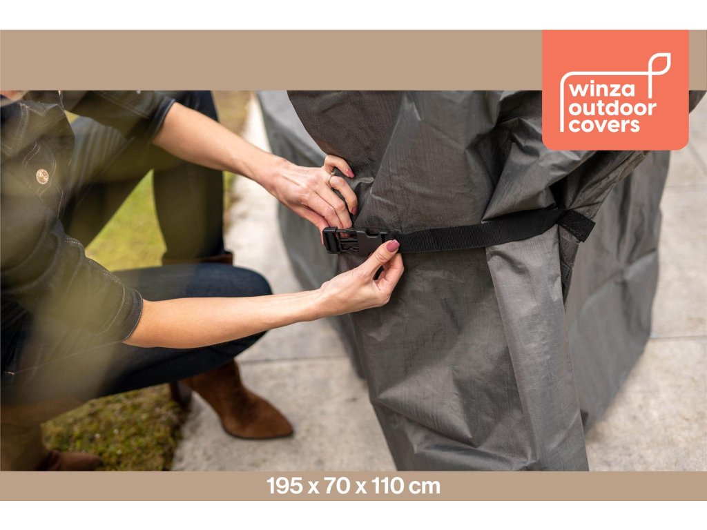 Obal na gril Winza je ideálním řešením pro ochranu vašeho grilu před nepříznivými povětrnostními podmínkami. Díky rozměrům 195x70x110 cm dokáže pokrýt většinu standardních grilů, což zajišťuje jejich dlouhou životnost.