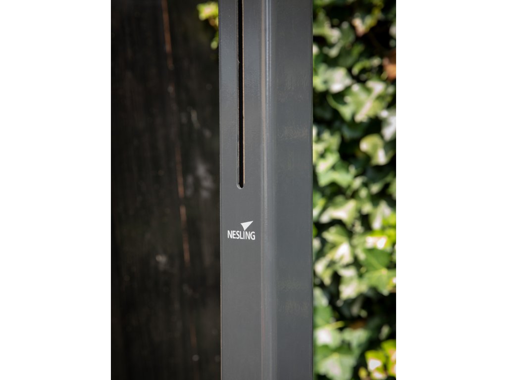 ocelový sloup s integrovaným pohyblivým očkem. Antracitová barva.