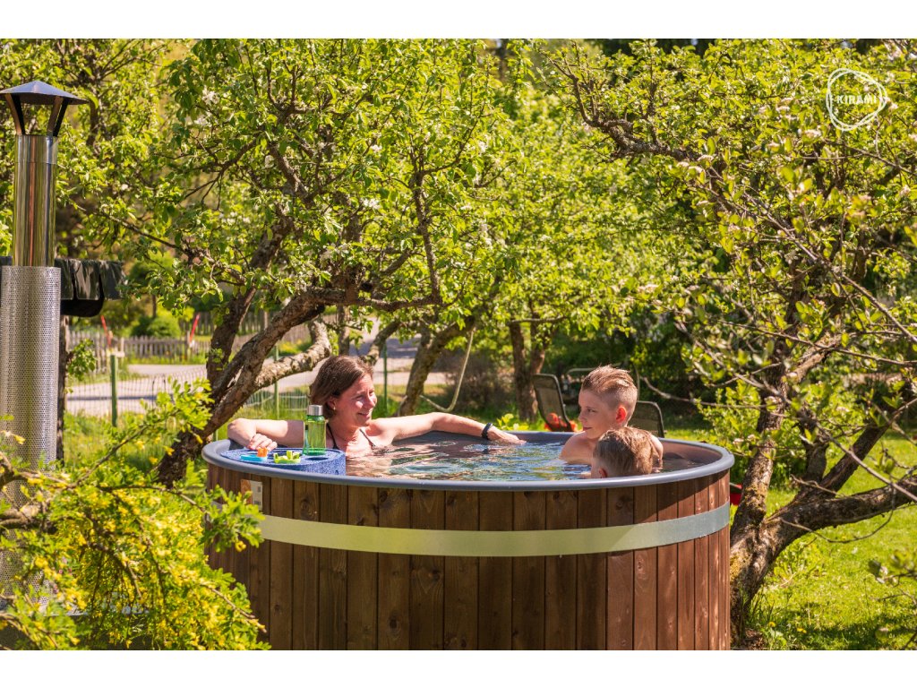Káď je vyhřívána venkovním ohřívačem Cult-si vhodným pro ohřev menších vaniček. Ohřívače jsou vyrobeny z vysoce kvalitního hliníku, který se používá v námořnictvu.
