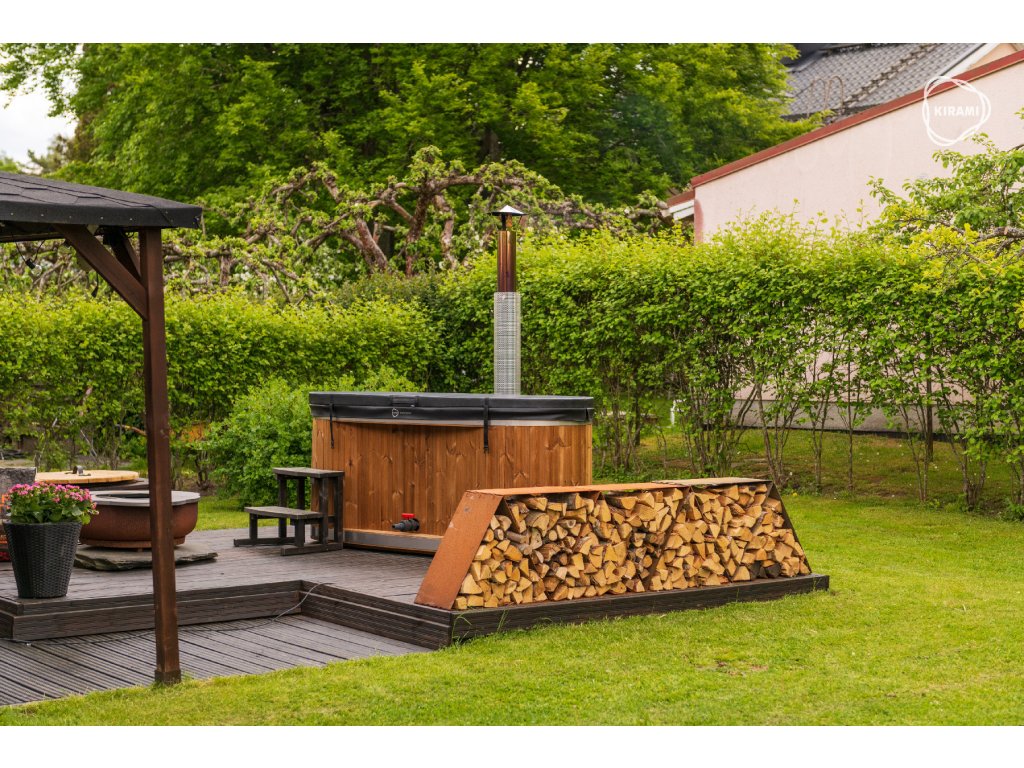 Tepelně zpracované borovicové dřevo použité na vnějším plášti je finskou alternativou k tmavému dováženému dřevu. ThermoWood je vysoce kvalitní, trvanlivý materiál s teplou hnědou barvou, který si dobře zachovává tvar. Světle šedá je sametově hladká a uvnitř jemně tečkovaná barva. Jemná, zářivá šedá barva interiéru je vždy nadčasová a elegantní a krásně splývá s prostředím.