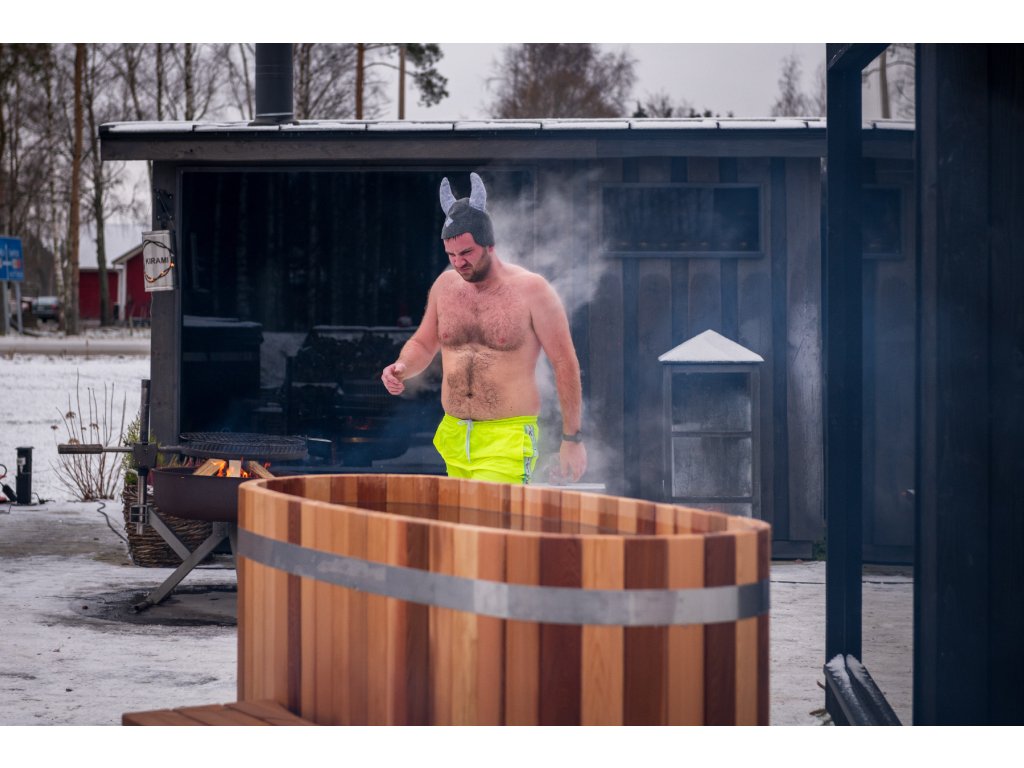Tepelně zpracované borovicové dřevo použité na vnější plášť je finskou alternativou k tmavému dováženému dřevu. ThermoWood je vysoce kvalitní, trvanlivý materiál s teplou hnědou barvou, který si dobře udržuje tvar. A když TW panely každý rok ošetřujete olejem na drevo, prodlužujete jejích životnost. Ošetření by mělo byt pouze pro venkovní panely, ne uvnitřní vany.