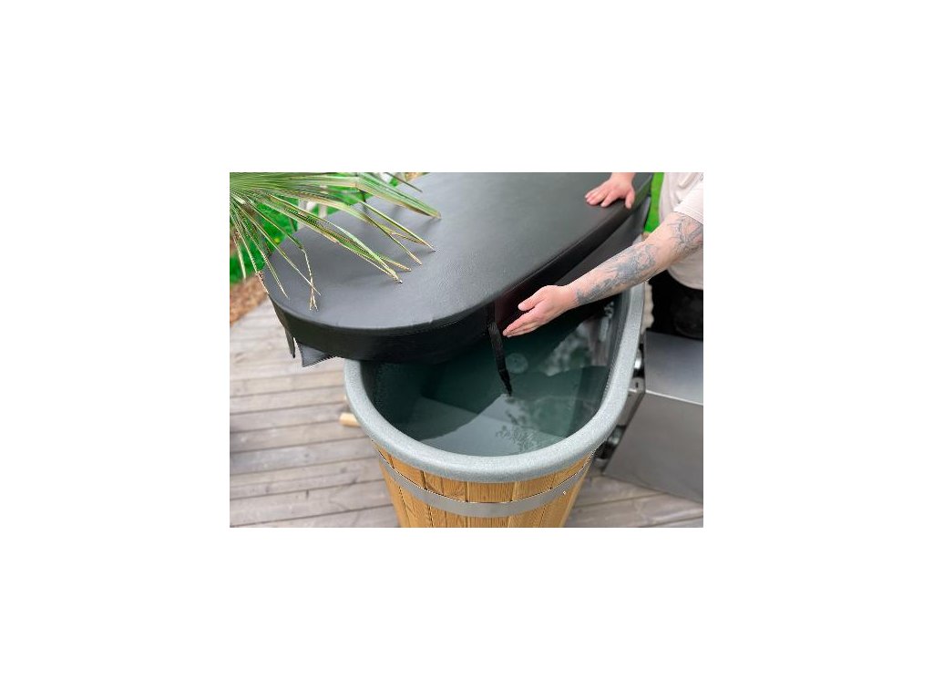Tento upravený kryt byl vyroben tak, aby ladil s našimi přepracovanými oválnými vířivkami. Přepracované oválné vířivky Kirami mohou být dřevěné, plastové, s topným tělesem nebo bez něj, ale izolovaný kryt má jednotný design, který pasuje na všechny modely.