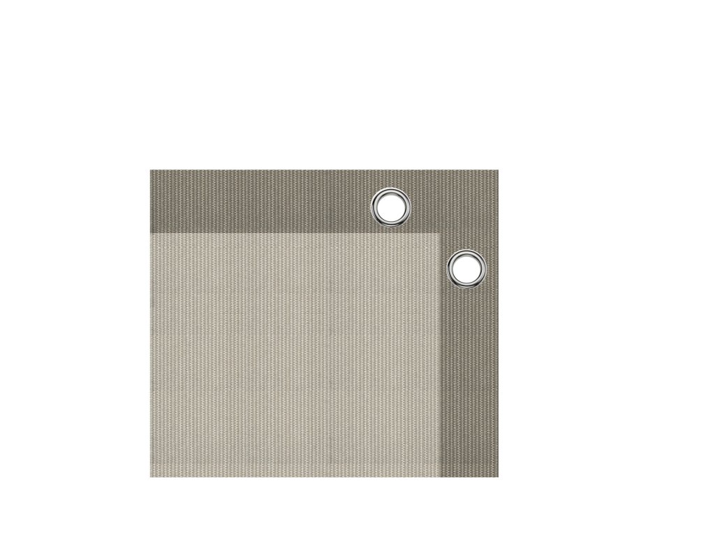 Táto barva je velmi populární. Světlý přírodní / pískový odstín je protkáný s krémovými vlákny. Táto atraktívní barva se dá dobře kombinovat s mnohými dalšími odstíny. Díky speciálnímu tkaní z pásových vláken je táto tkanina také o něco viditelnější. Má hmotnost 250 gr/m2, snížení větra o 90% a stínové procento nejmíň 86%.
