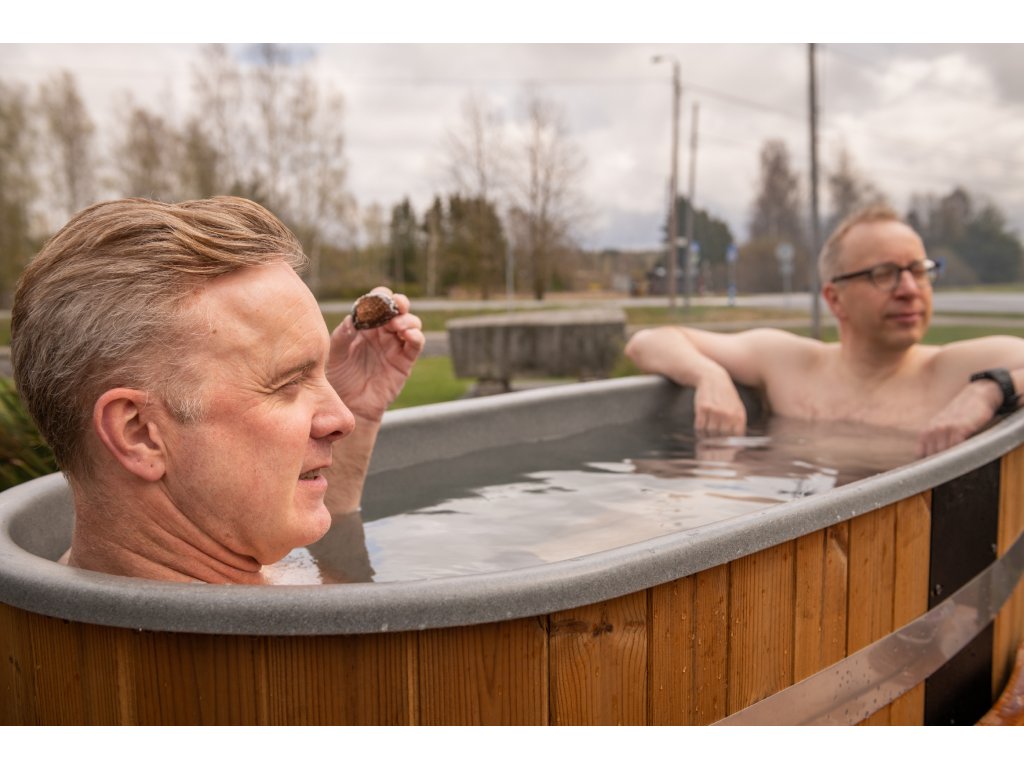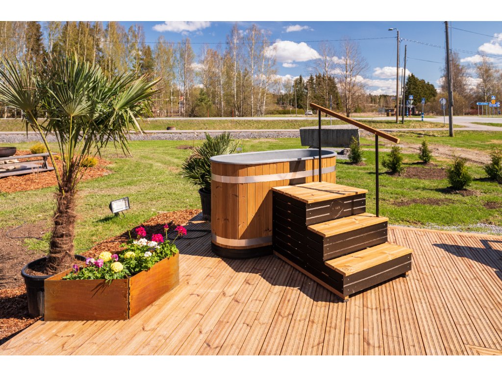 Tepelně zpracované borovicové dřevo použité na vnějším plášti je finskou alternativou k tmavému dováženému dřevu. ThermoWood je vysoce kvalitní, trvanlivý materiál s teplou hnědou barvou, který si dobře zachovává tvar. Světle šedá je sametově hladká a uvnitř jemně tečkovaná barva. Jemná, zářivá šedá barva interiéru je vždy nadčasová a elegantní a krásně splývá s prostředím.