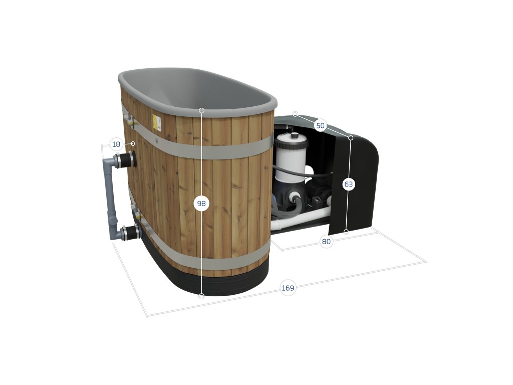 Táto kompaktní kádě s vnitřní vanou z plastu, která se lehce čistí, má dvě tvarované sedadla, je vhodná pro jednu anebo dvě osoby. Nízka hmotnost a malé rozměry kádě ulehčují její umístnění na malých dvorech i na terasách. Díky rychlému ohřevu Tiny Flow a malé kapacitě vody se i rušné všední večery můžou zmenit na luxusní chvíle. Jako doplněk k vaně je k dispozícii bezpečné LED osvětlení, které zvýrazňuje její vlastní barvu a vytváři magickou atmosféru pro koupání i v podzimní a zimním čase, kdy se už brzo stmívá.