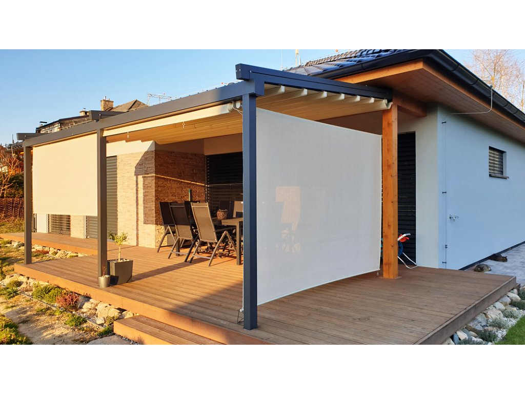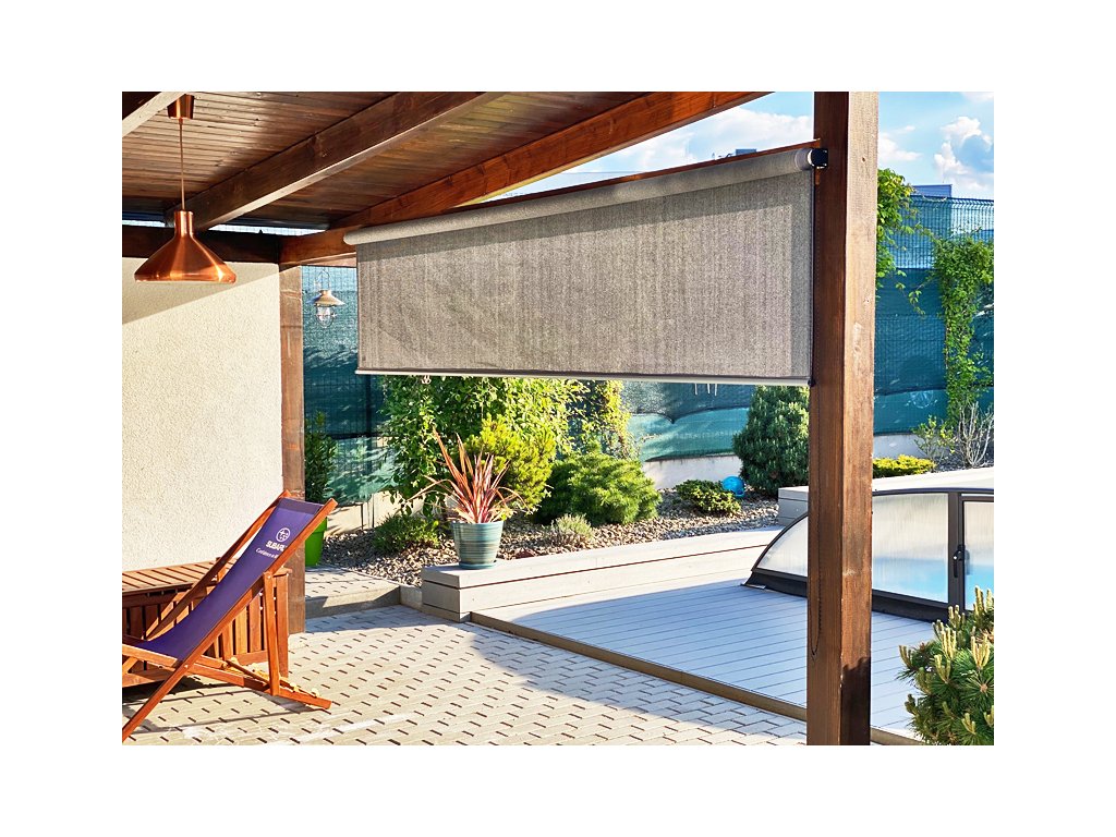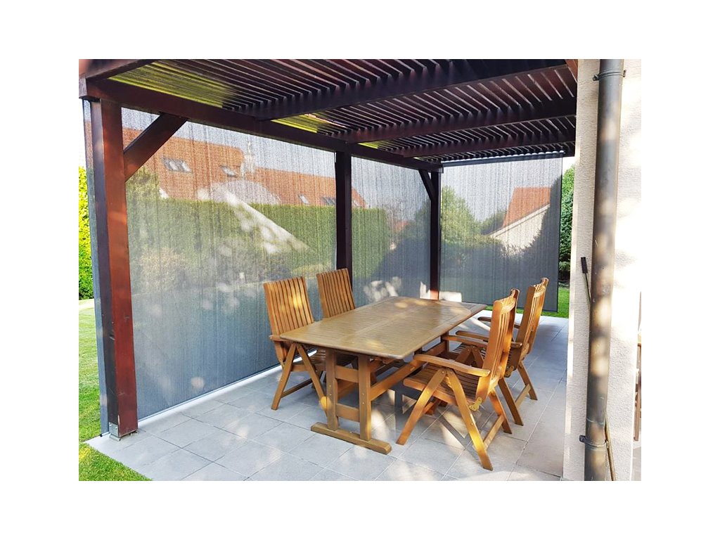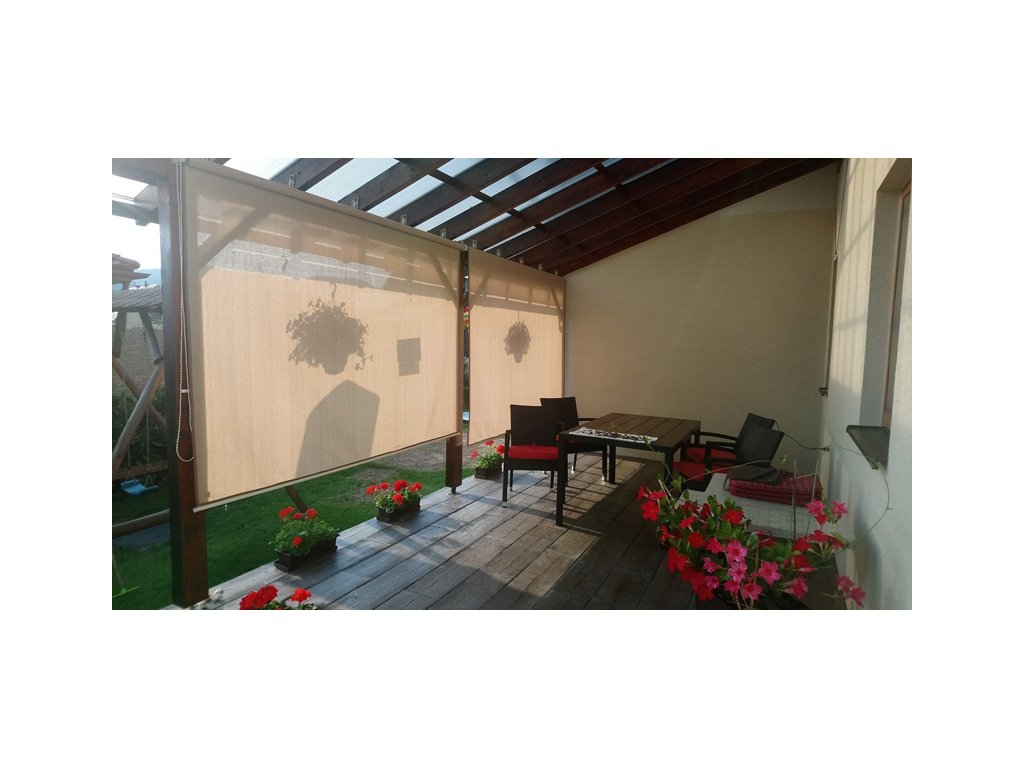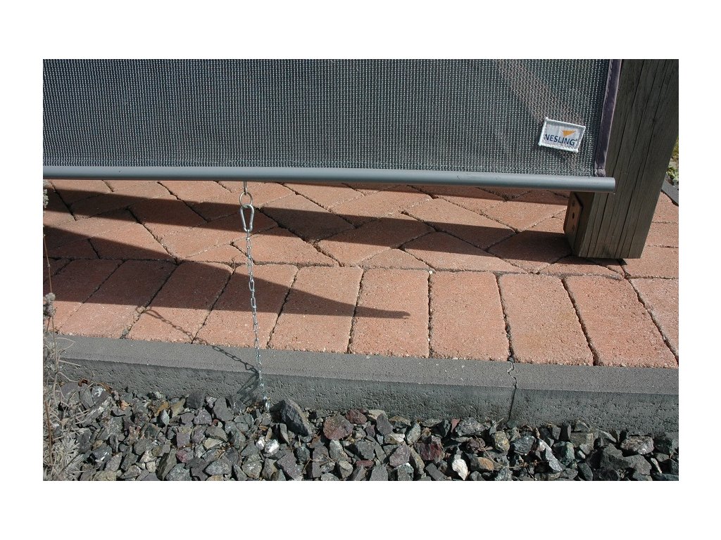 ** rolety doporučujeme také přichytit na malé řetízky a karabinky do země, nebo obrubníku terasy. Tehdy můžete rolety používat i při slabém vánku