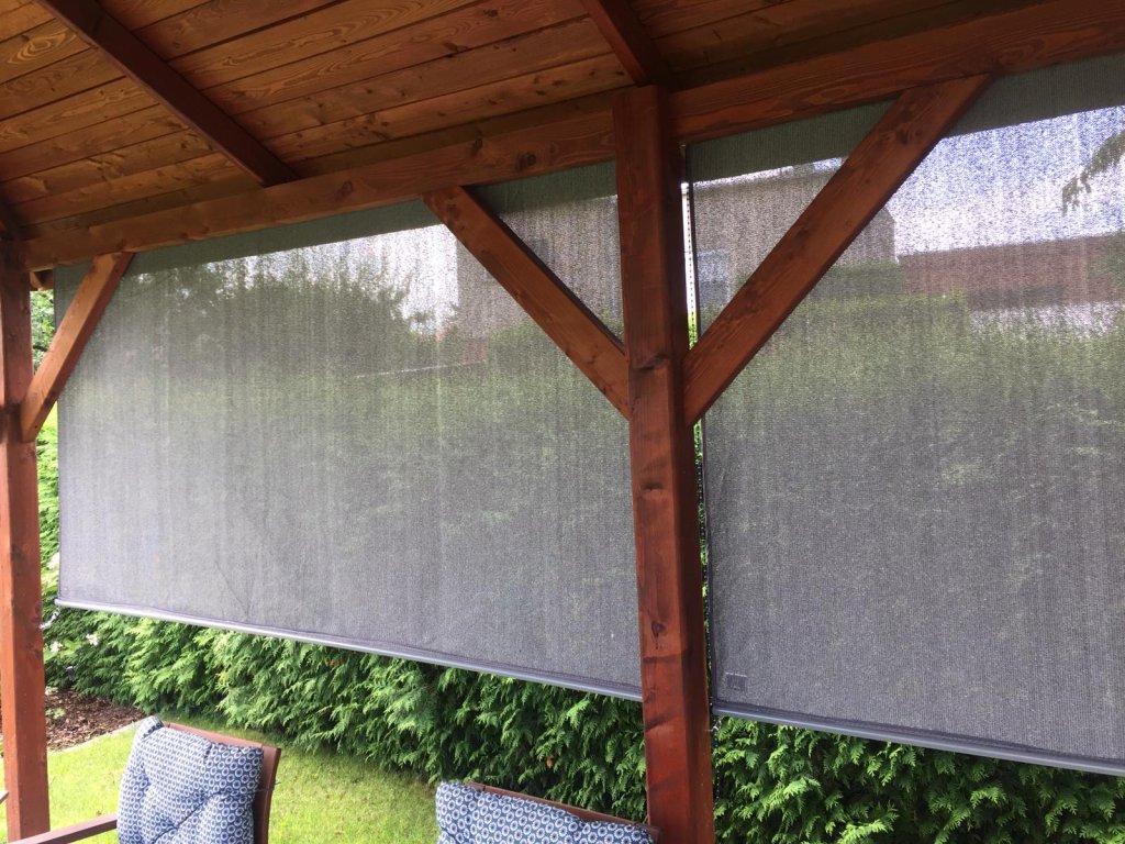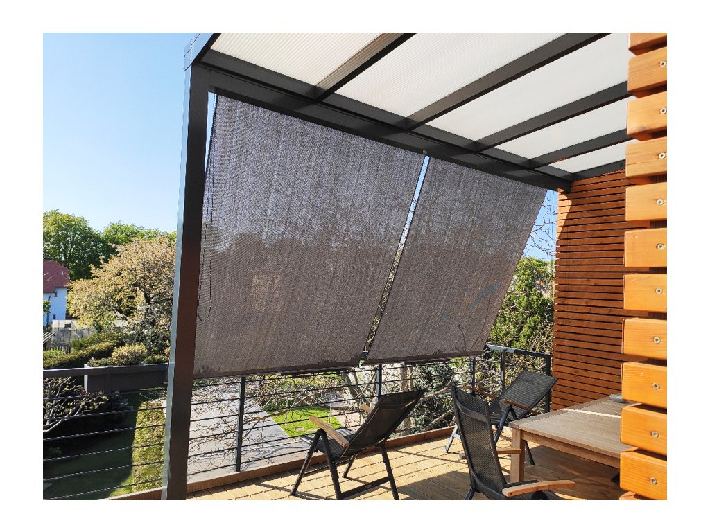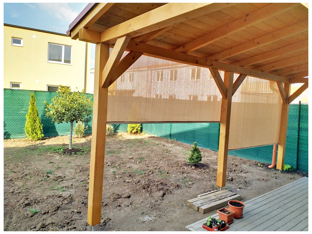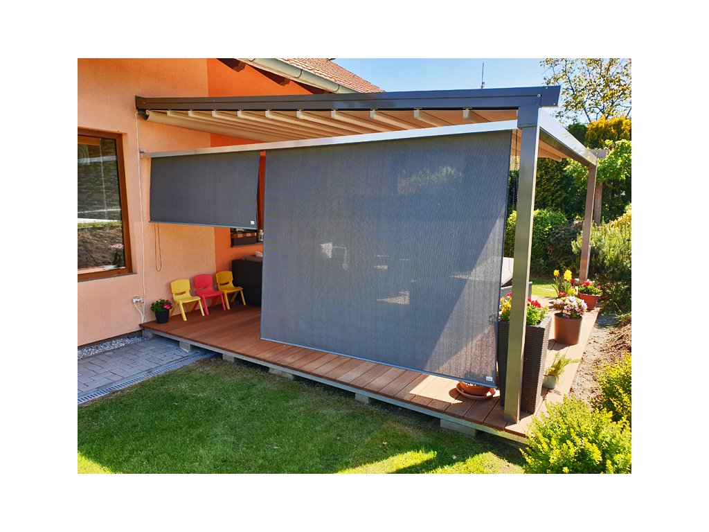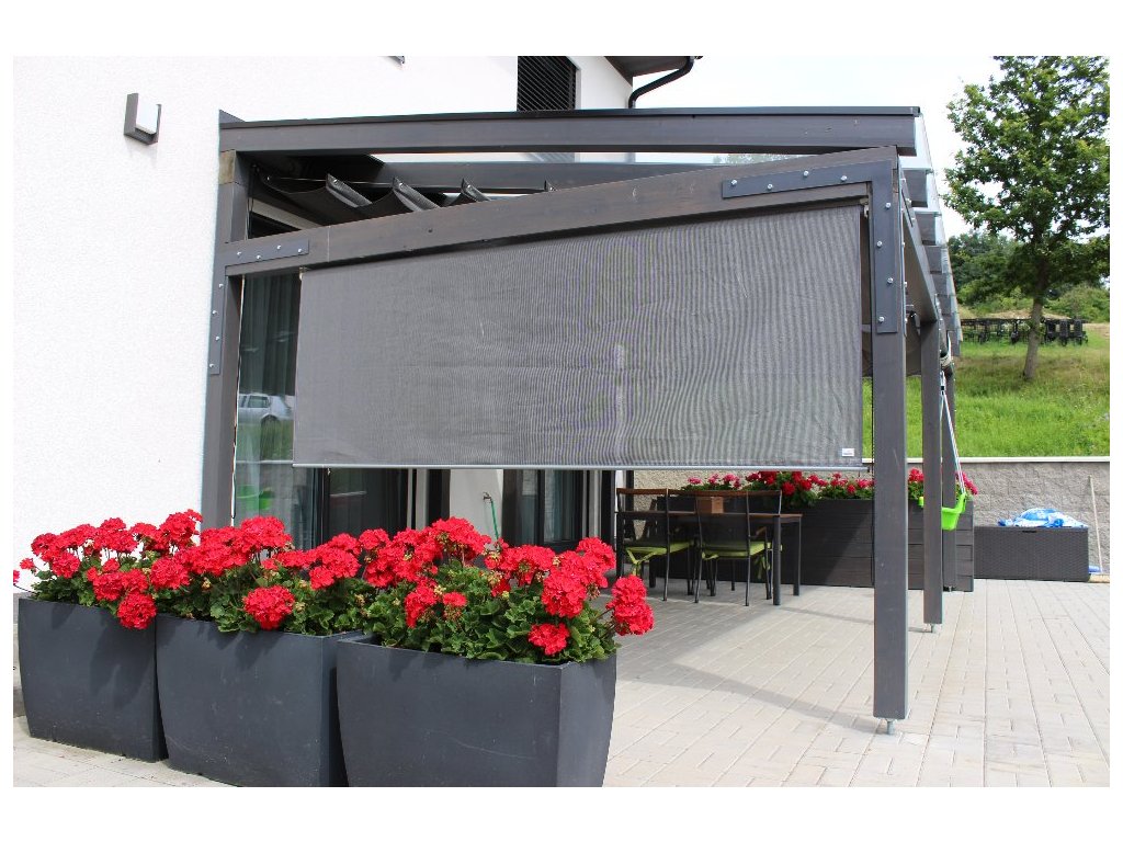 ** rolety doporučujeme také přichytit na malé řetízky a karabinky do země, nebo obrubníku terasy. Tehdy můžete rolety používat i při slabém vánku