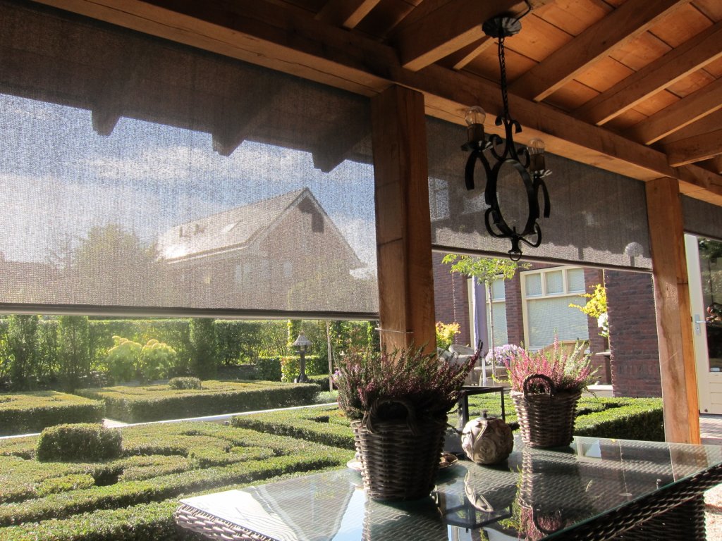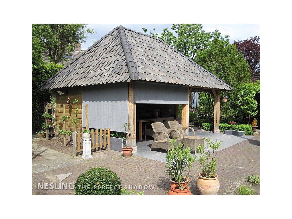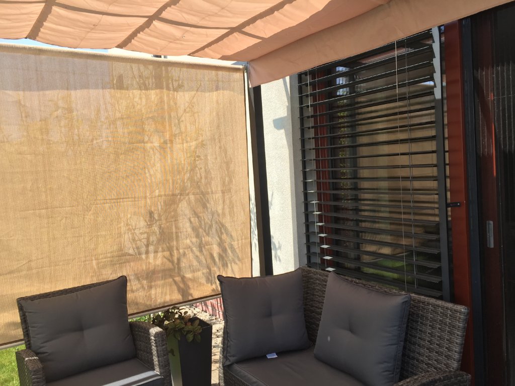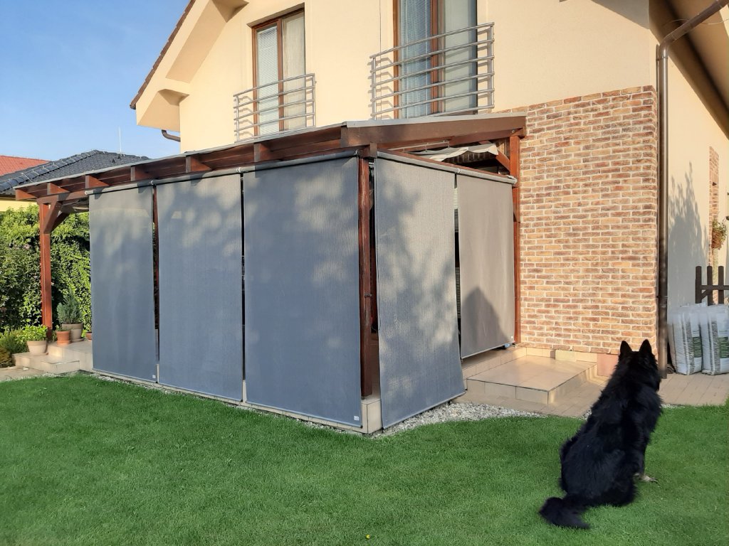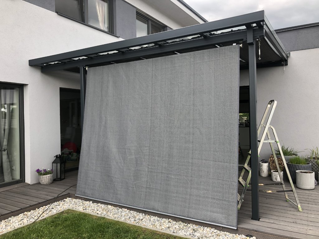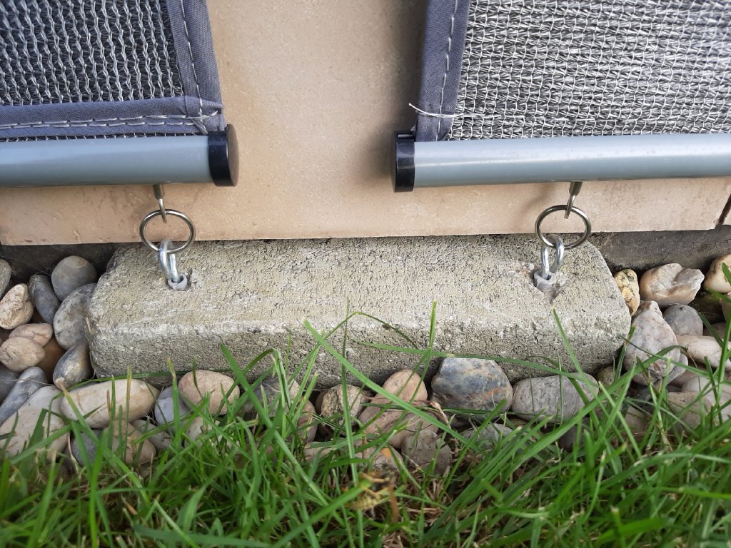 ** rolety doporučujeme také přichytit na malé řetízky a karabinky do země, nebo obrubníku terasy. Tehdy můžete rolety používat i při slabém vánku