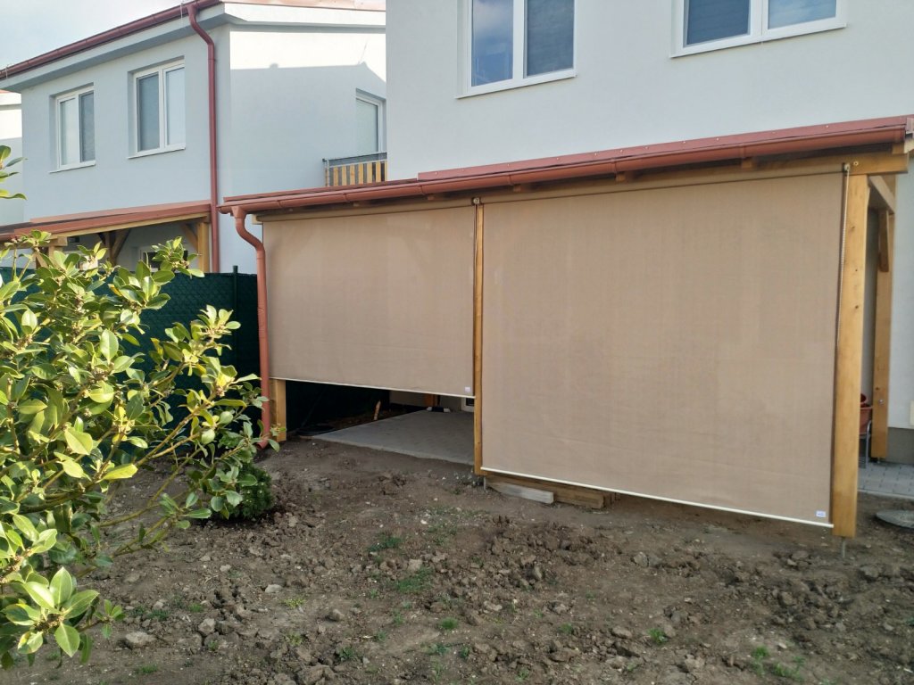 ** rolety doporučujeme také přichytit na malé řetízky a karabinky do země, nebo obrubníku terasy. Tehdy můžete rolety používat i při slabém vánku