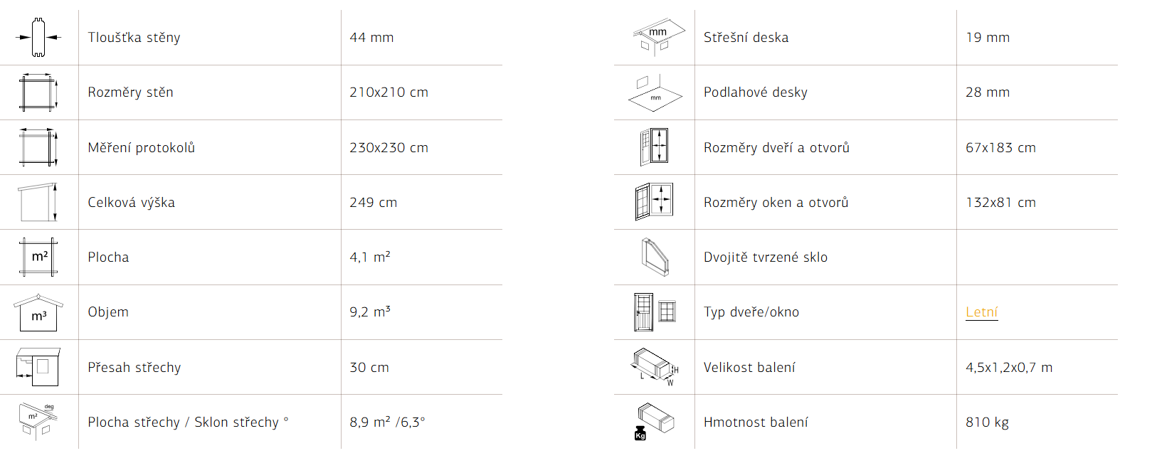 Zastavěná plocha: 2,1 m x 2,1 m