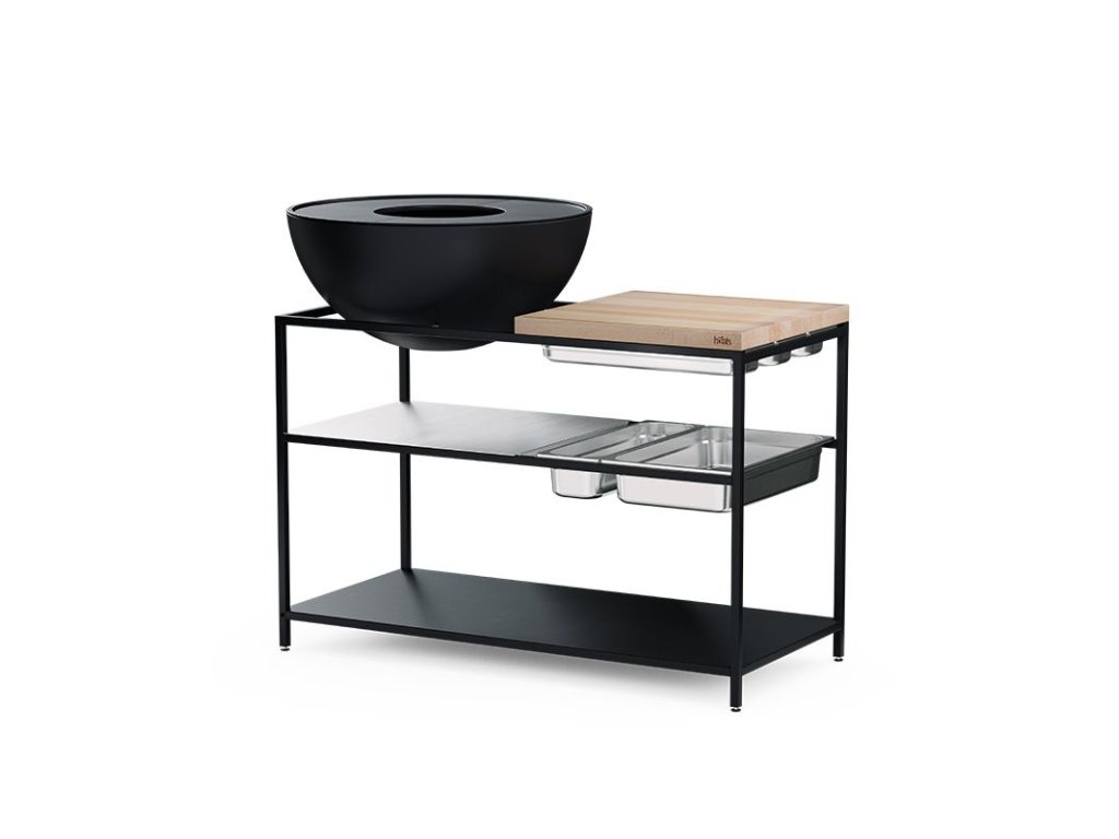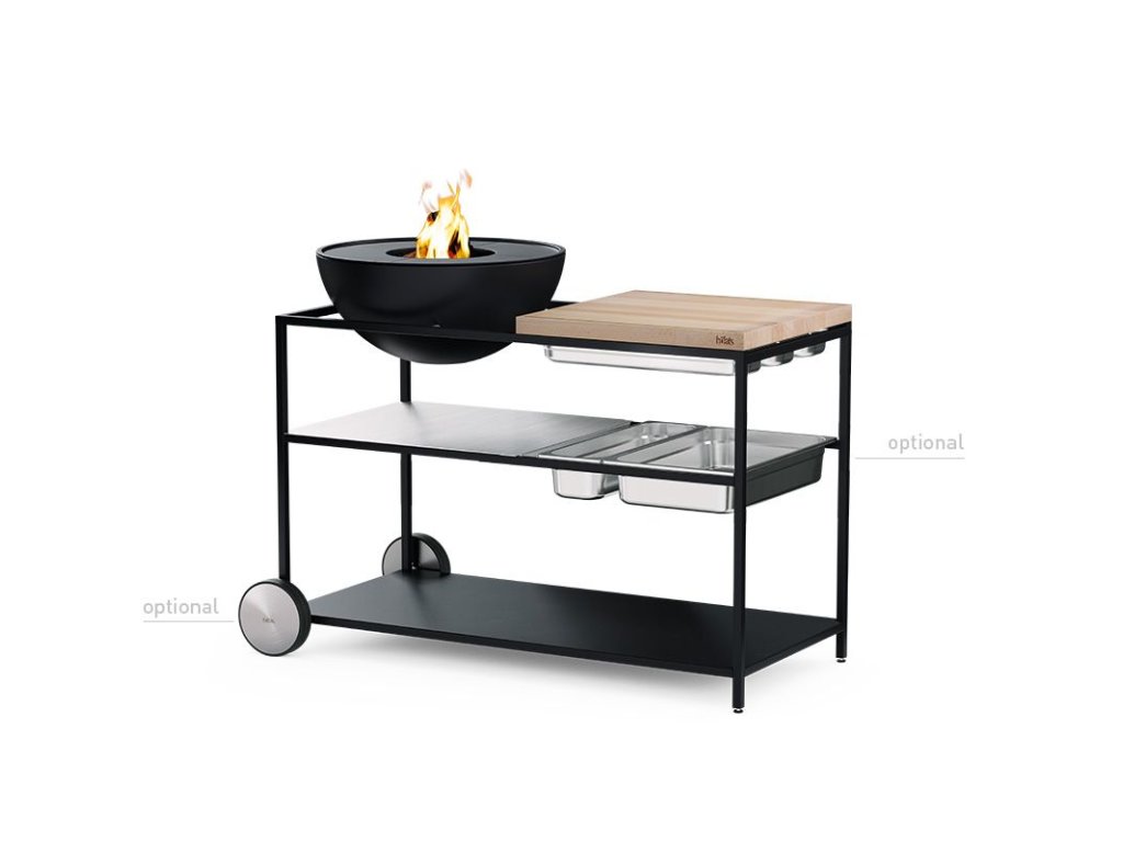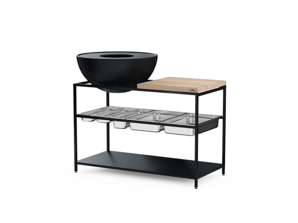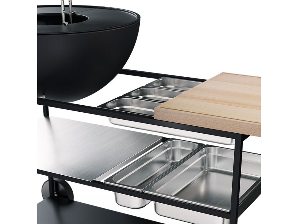 Dřevěnou pracovní desku je možné posouvat po rámu, aby jste se dostali k nádobám z nerezávějící ocele pod nimi. Sada nádob z nerezavějící ocele FIRE KITCHEN - pětidílna sada nabízí dostatek prostoru pro všechny ingrediencie, které potřebujete pro svoje menu nad ohněm. Můžete je použit na střední i horní úrovni a dokonce je zakryt pracovní deskou.