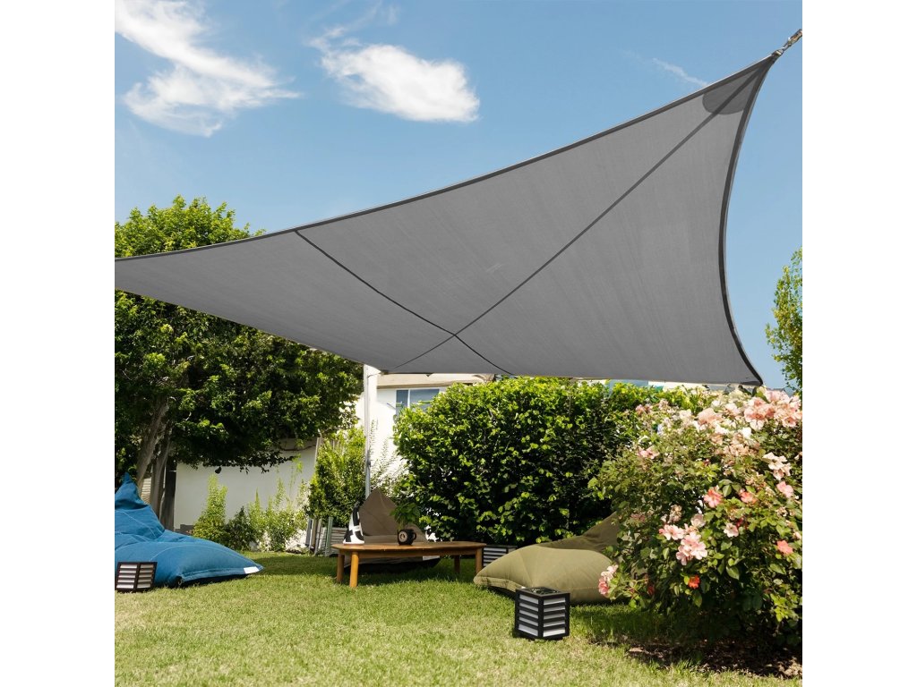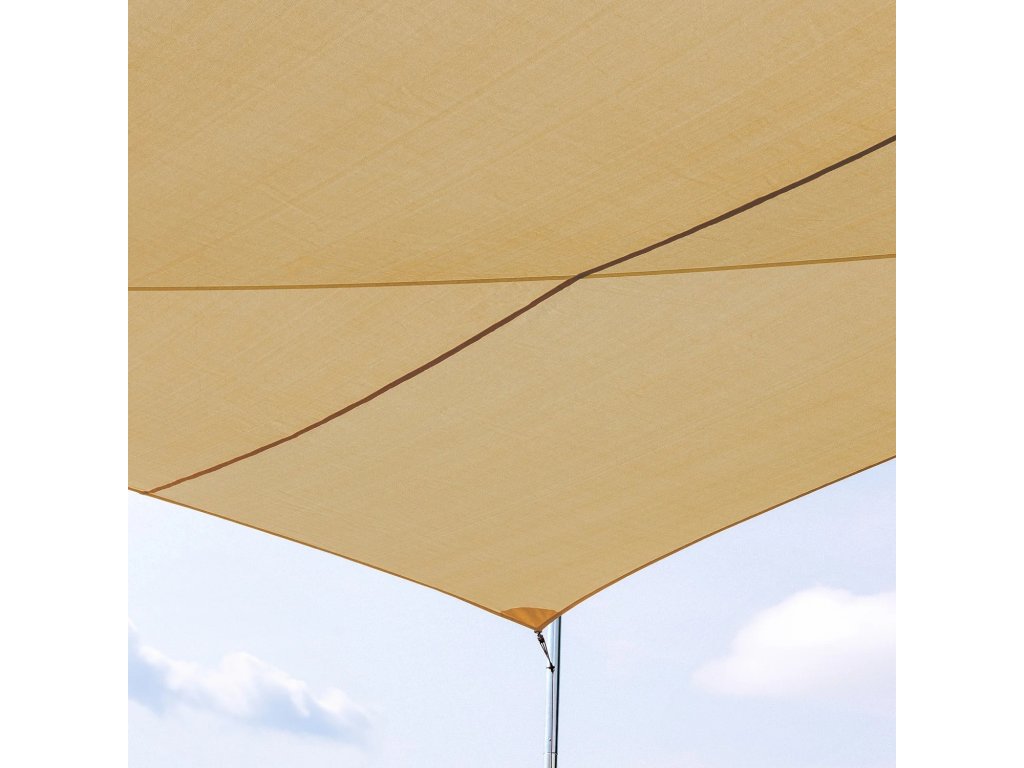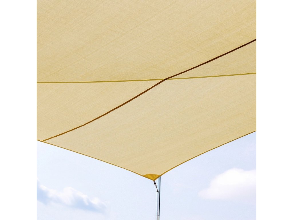 všechny stínící plachty mají mírně konkávní tvar kvůli dobrému napnutí. Je to cca 5% délky strany. Příklad čtvercová plachta s rozměry 5 x 5 m má v středě strany šírku cca 4,8m cm.