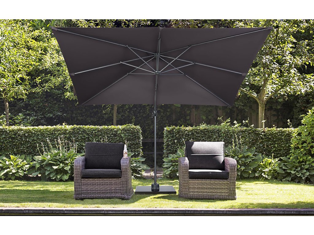 Slunečník Voyager 1 ve velikosti 3 × 2 metry je ideální použít v kombinaci s obdélníkovým zahradním stolem. Tento slunečník lze snadno otočit o 360 ° a vyklopit dozadu (1-úrovňové naklápění).