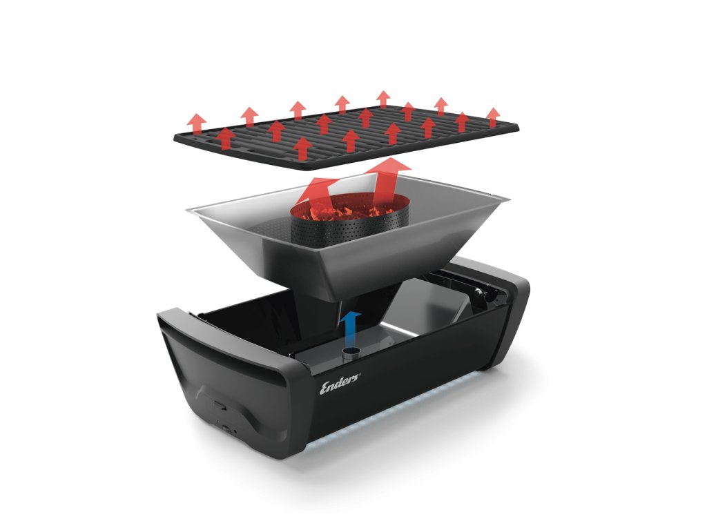 - technológie ventilátoru E-FAN BBQ – extrémně tichý, plynule nastavitelný, rychle připraví gril na použití