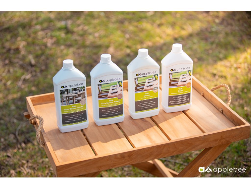 Applebee Teak Shield je produkt pro údržbu založený na syntetických polymerech, které mají vlastnosti odpuzující vodu a nečistoty a jsou odolné vůči růstu řas a plísní. Chrání teak před vodou a vlhkostí. Působí jako prevence proti skvrnám způsobeným jídlem a pitím. Udržuje přirozený odstín dřeva.