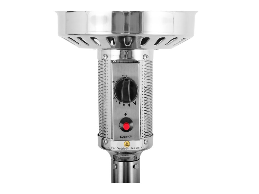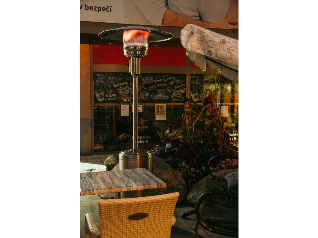 Venkovní ohřívač G21 Moon je v atraktivním nerezovém provedení z kvalitních materiálů – z nerezové oceli a hliníku. Teplo z něj díky výkonnému hořáku sálá ihned po zapnutí. Ovládání je snadné, stačí jen napojit tepelný zářič na 10 kg propan butanovou lahev, pro jejíž ukládání je prostor ve stojanu teplometu. Pak zmáčknete tlačítko mechanického piezo elektrického zapalování a exteriérový tepelný zářič Moon začne hřát.