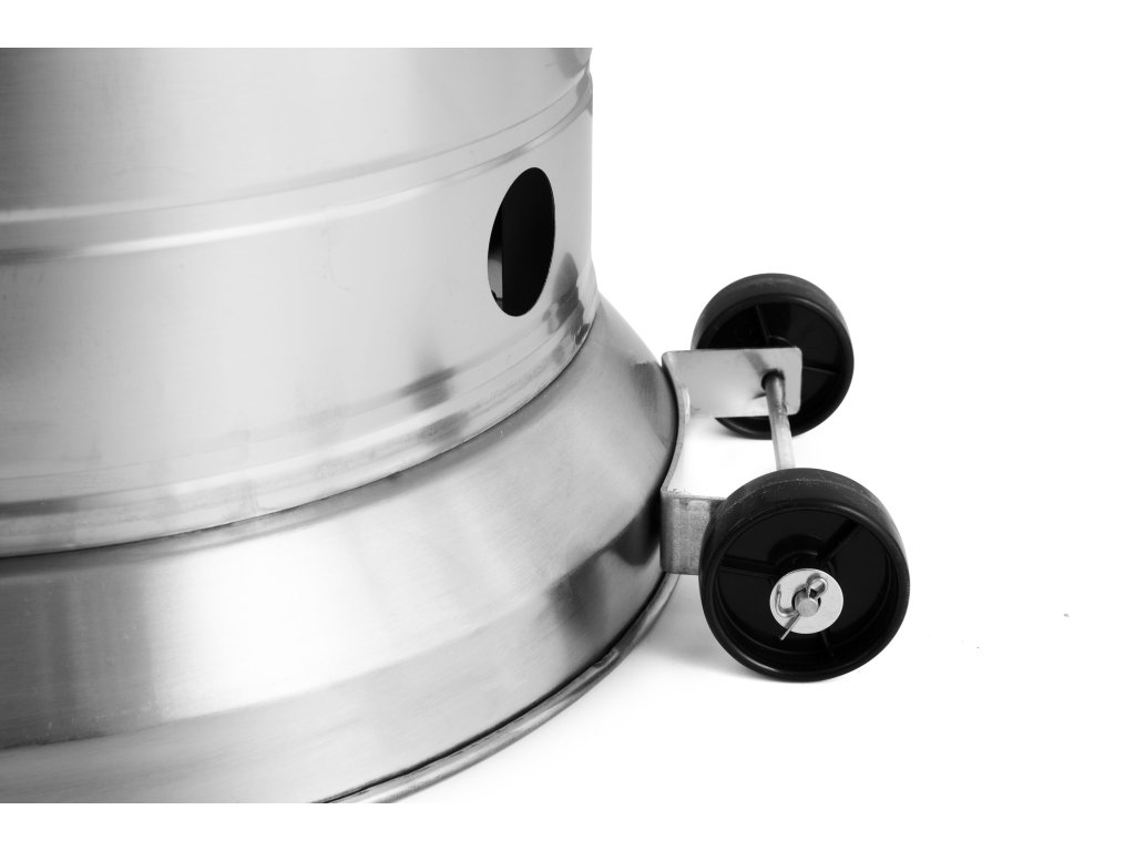 Pro bezpečnou a snadnou manipulaci je venkovní topidlo G21 Moon vybaveno kolečky. Ve výbavě je i připojovací hadice a redukční ventil, takže už žádné další příslušenství nemusíte dokupovat. Kvůli bezpečnosti je tepelný plynový zářič jištěn pojistným bezpečnostním ventilem, který zastaví přívod plynu při případném převrácení topidla.