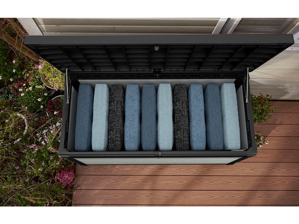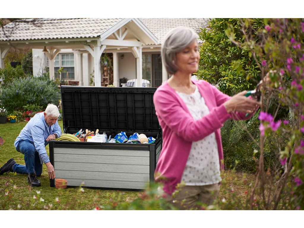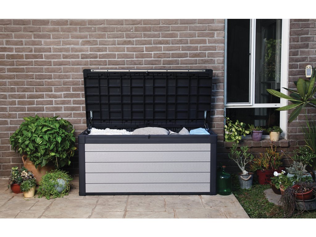 Tento rustikální úložný box s dřevěným efektem je vyrobený z nových materiálů DUOTECH s UV ochranou. Je tedy navrhnutý tak, aby odolal slunci a deští a udrží všechno od polštářů po grilovací vybavení suché a větrané po celý rok. Automatický otvírací mechanizmus ulehčuje otváraní boxu, zatím co uzamykatelné víko chráni vaše věci.