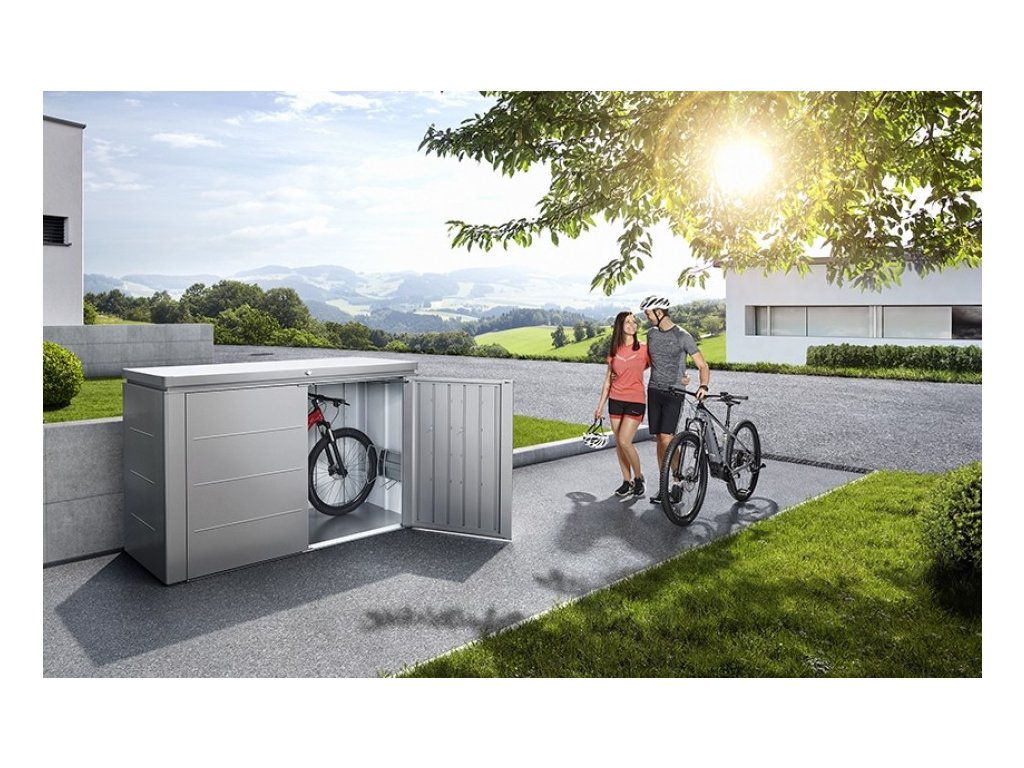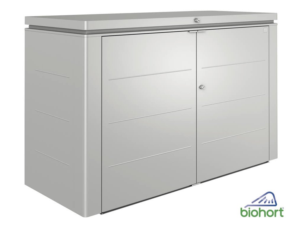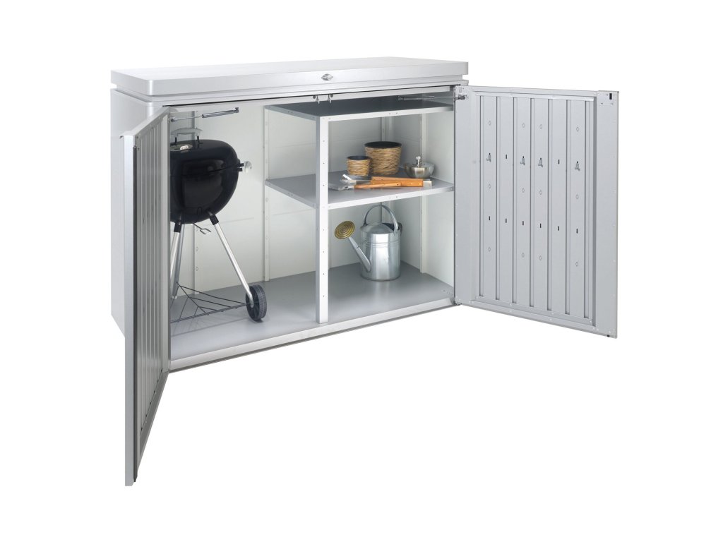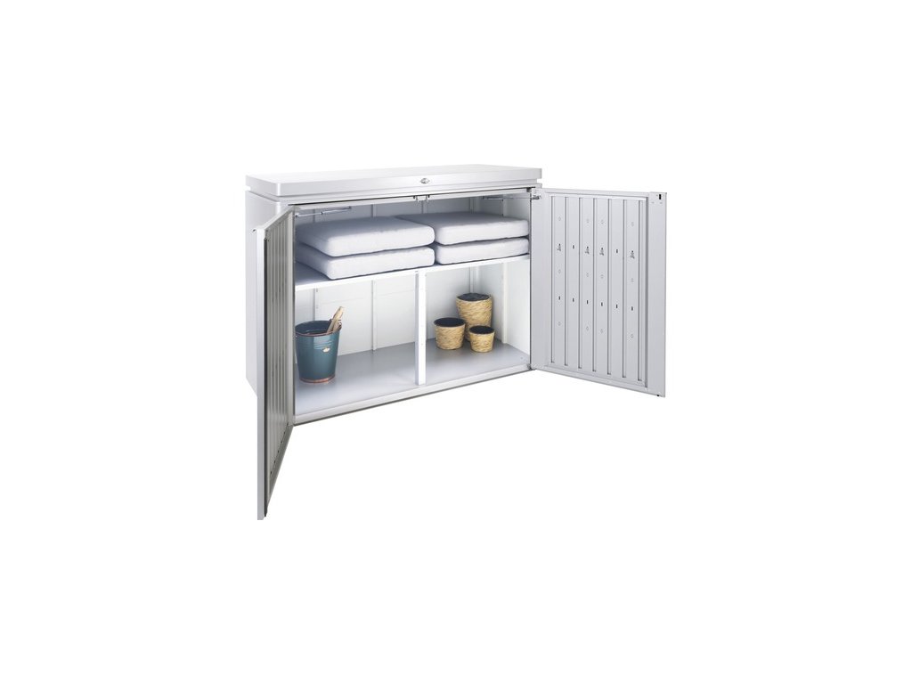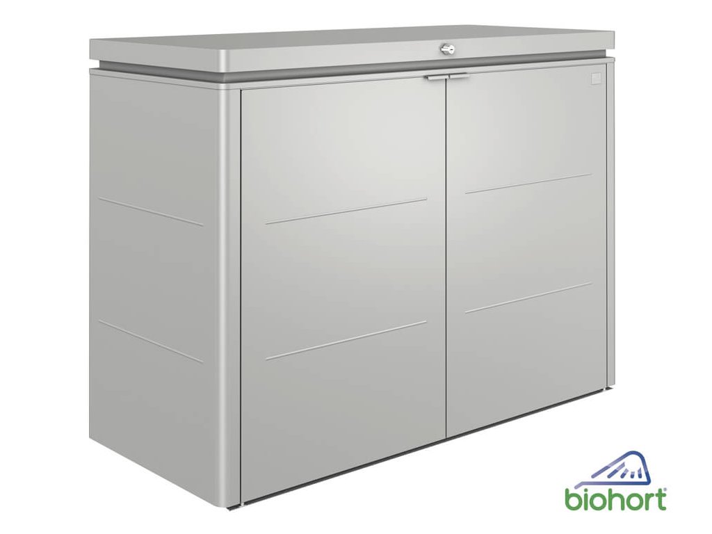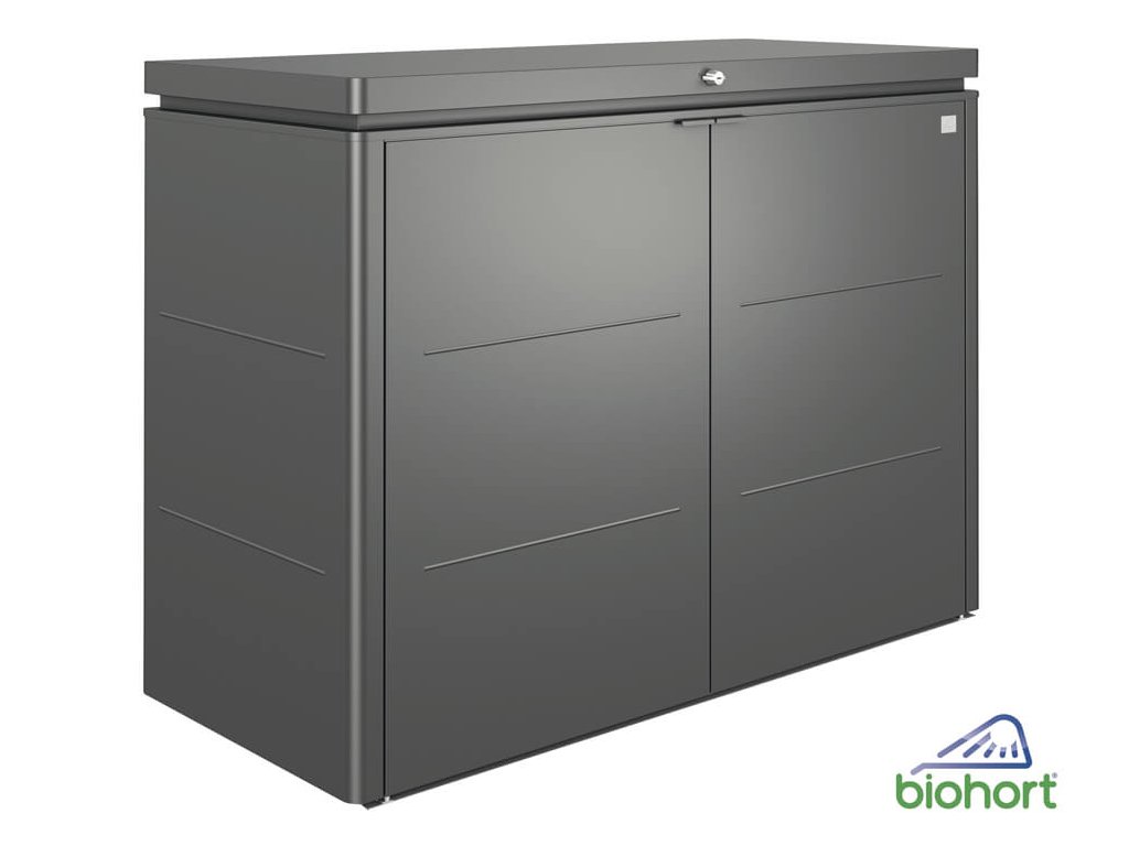 HIGHBOARD má mnohoraké využití. Odkládací prostor na zahradní příslušenstvo, skládací nábytek, ale i nádoby na odpad. Odpadkové koše neposkytují pěkný pohled, avšak víte je schovat do praktického dizajnového boxu. Křídlové dveře a poklopový otvor umožňují lehce manipulovat s uskladněnými věcmi a nádobami. Robustní uzavíraní s cylindrickým zámkem zabezpečí, aby se dovnitř nedostali venkovní nečistoty.