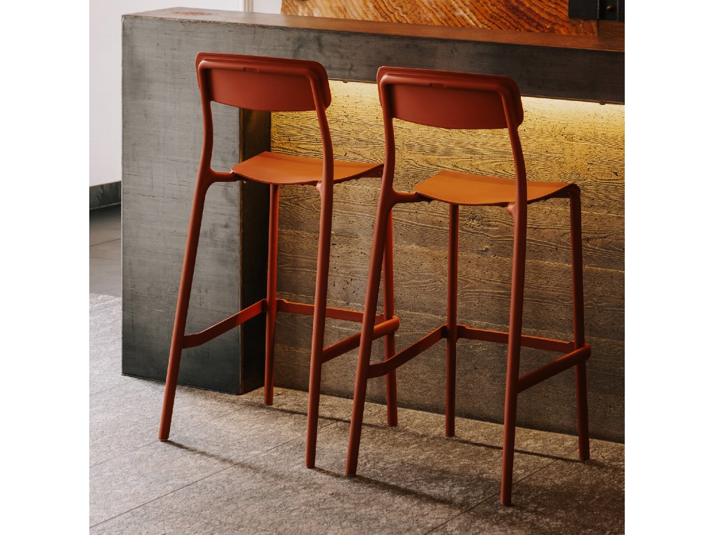 Barové židle jsou navíc stohovatelné, takže je lze snadno přeskládat a skladovat. Pohodlí a stabilitu zajišťuji gumová ukončení nožiček.