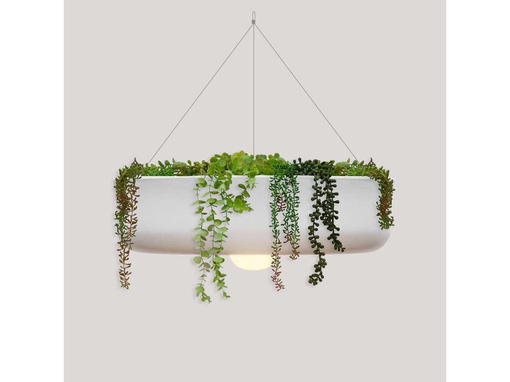 Kruhový závěsný květináč ELBA 59 s bezdrátovým osvětlením je vyrobený ze superodolného bílého polyetylénu. Jeho instalace je velmi jednoduchá, protože obsahuje magnet, takže ho můžete zavesit bez vŕtání otvorů na jakýkoli magnetizovatelný povrch. Když chcete nastavit jeho výšku, jednoduše zatlačte kábel dovnitř. Můžete ho kombinovat s menší verzi: ELBA 39. Obsahuje sadu umelých rostlín. Jeho osvětlení: vyžaduje instaláci, stačí ji přiblížit k vnitřnímu kovovému kroužku a díky magnetické základni přilne. Součásti této žárovky je i dálkové ovládání na její zapnutí a vypnutí a regulaci její intenzity. Má 900 lumenů a výdrž batérie od 6 do 20 hodín v závislosti od intenzity.